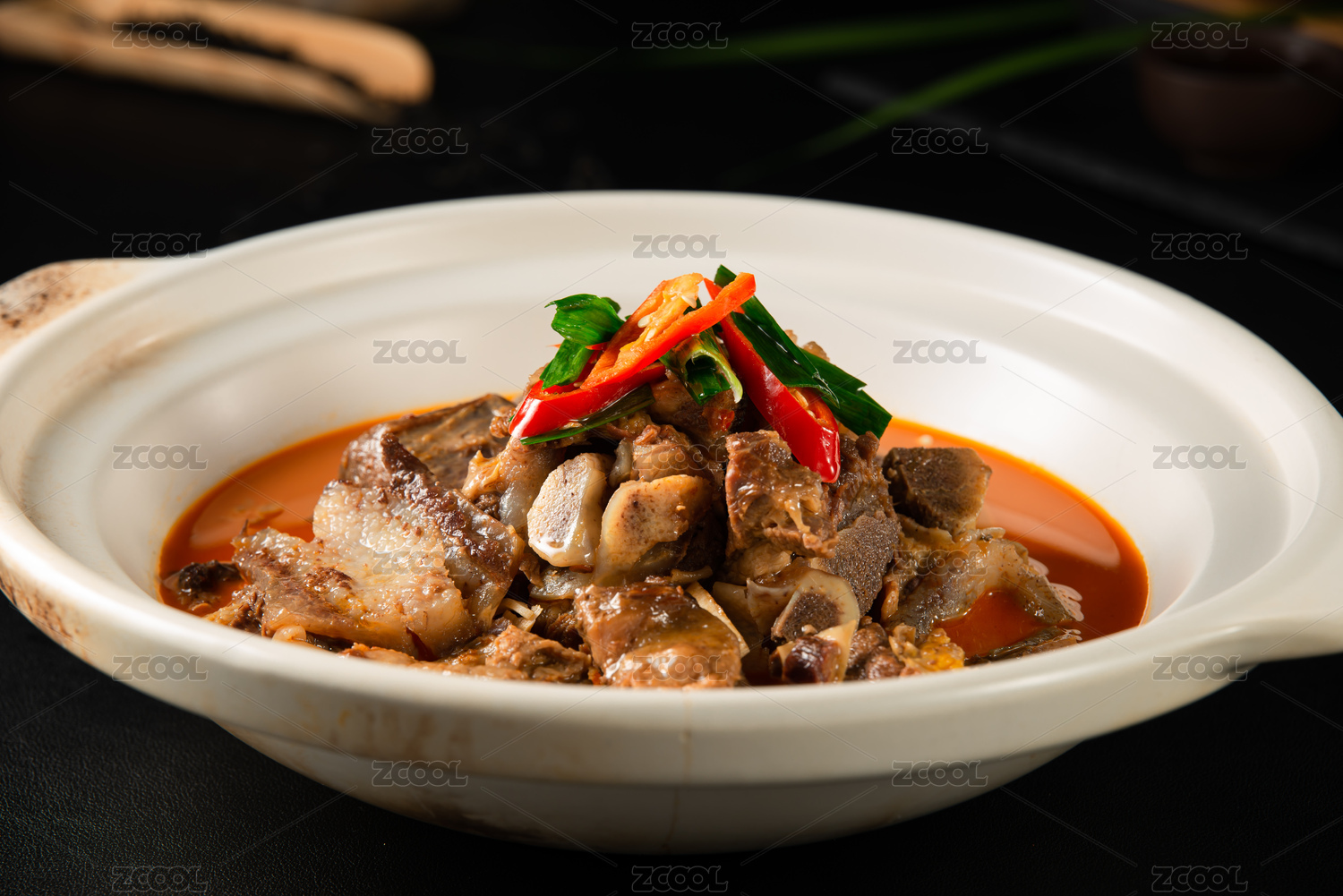 砂锅红焖香辣羊排带皮羊肉