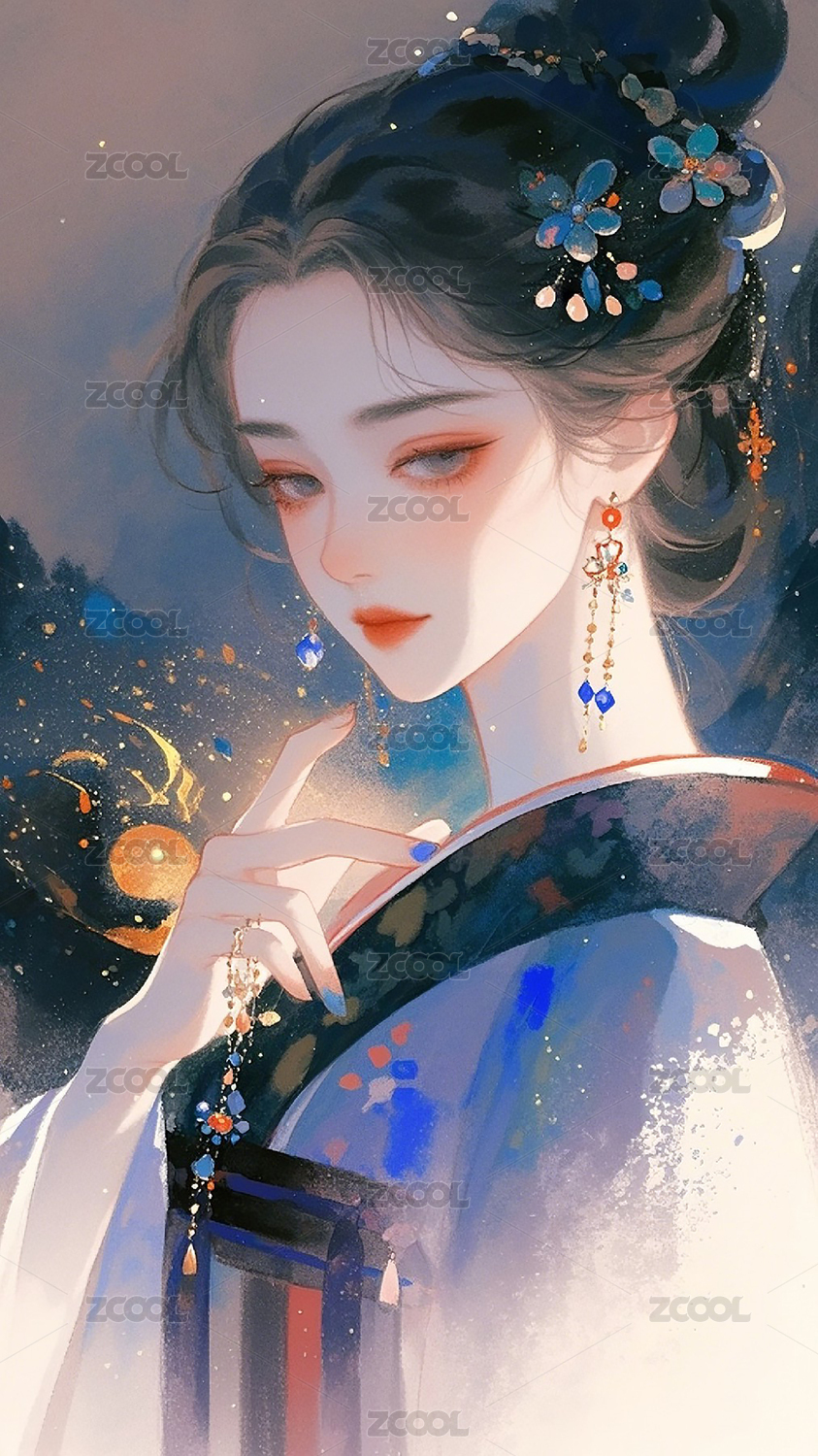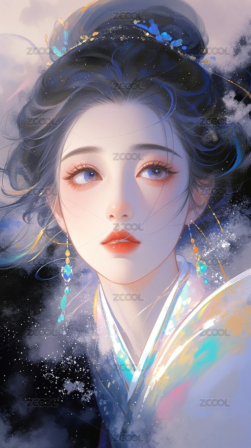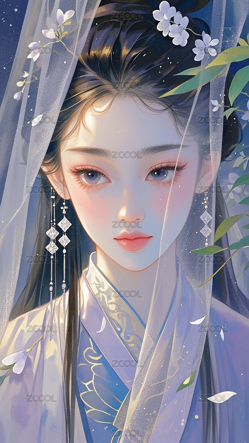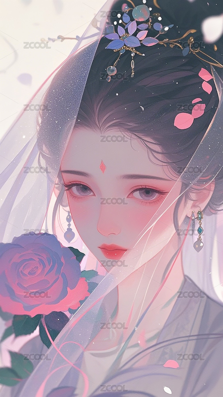 古风,美人,美女,女孩,少女,女生,竖构图,对视,插画,国风