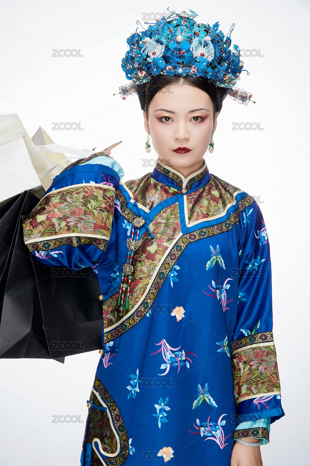 穿越而来手提购物袋的清朝皇后