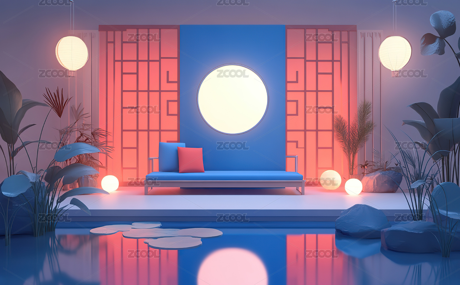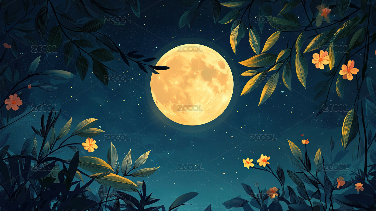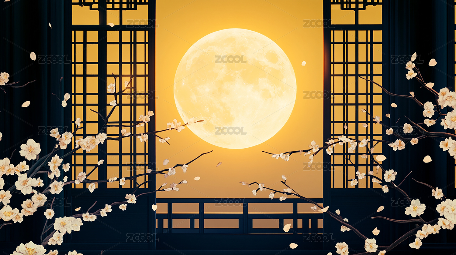 AIGC202403,展台,中秋,月亮,植物,花,产品,木头,窗户