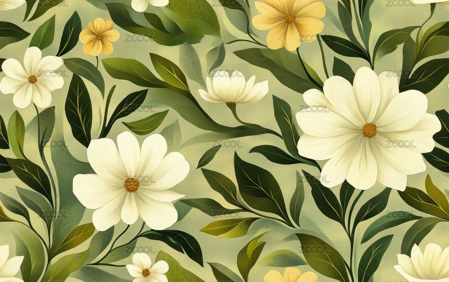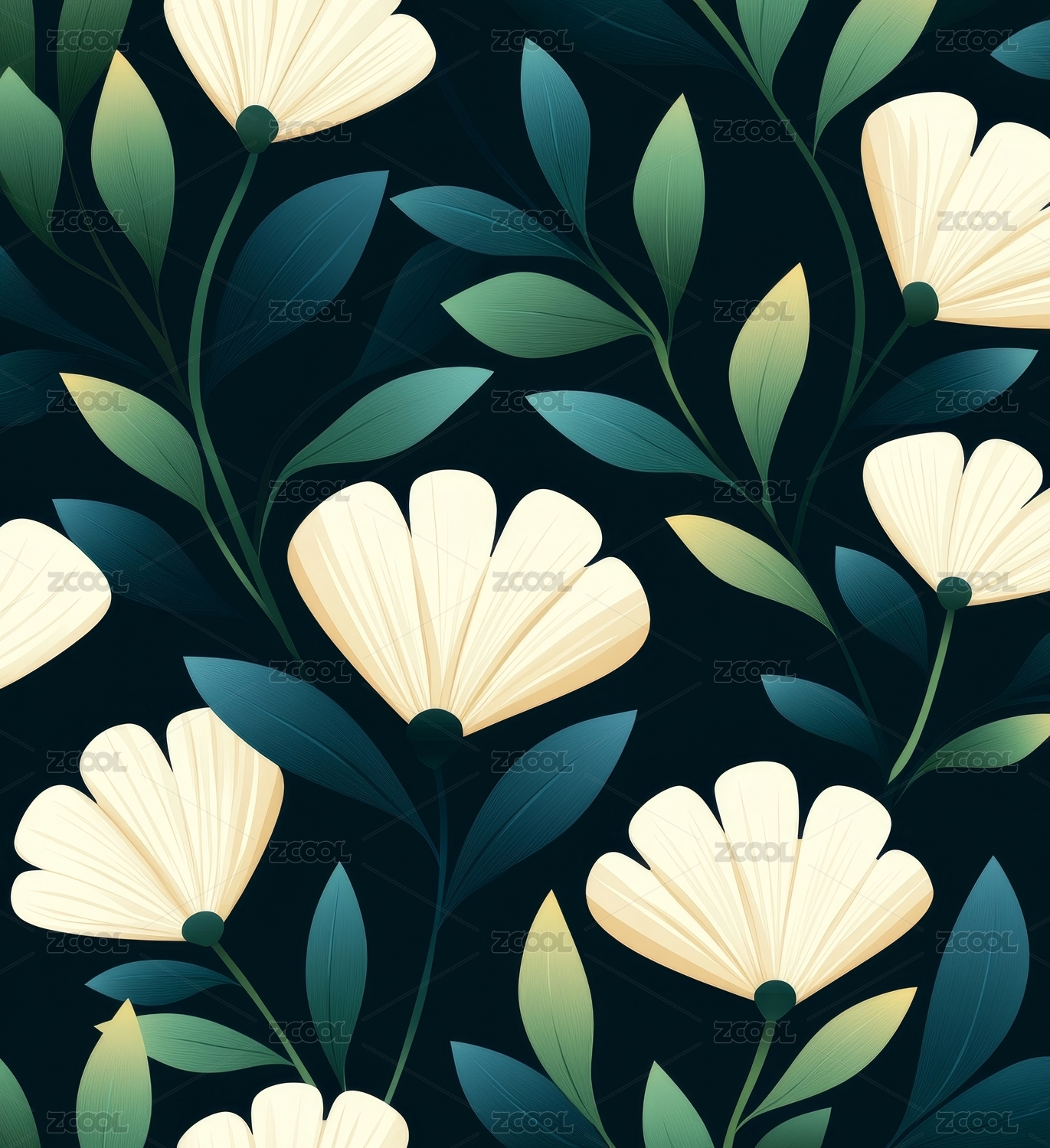 花朵,植物,花瓣,叶子,插画,扁平风,卡通,可爱,四方连续,纹样