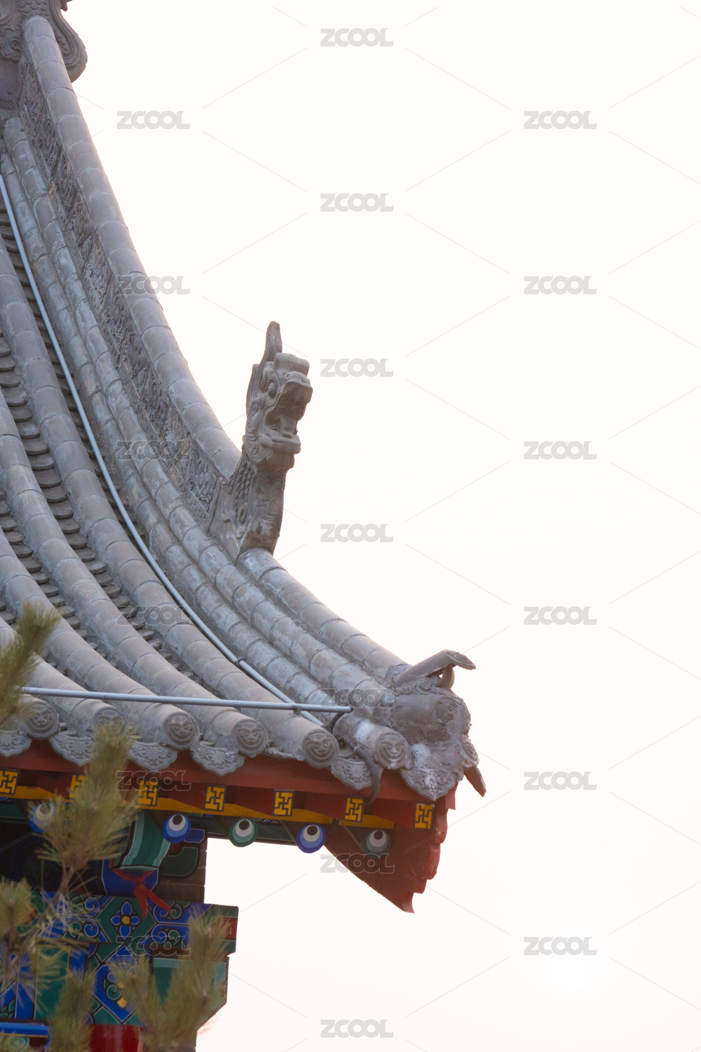冬天寒冷大雪建筑历史屋檐彩绘旅游背景老君
