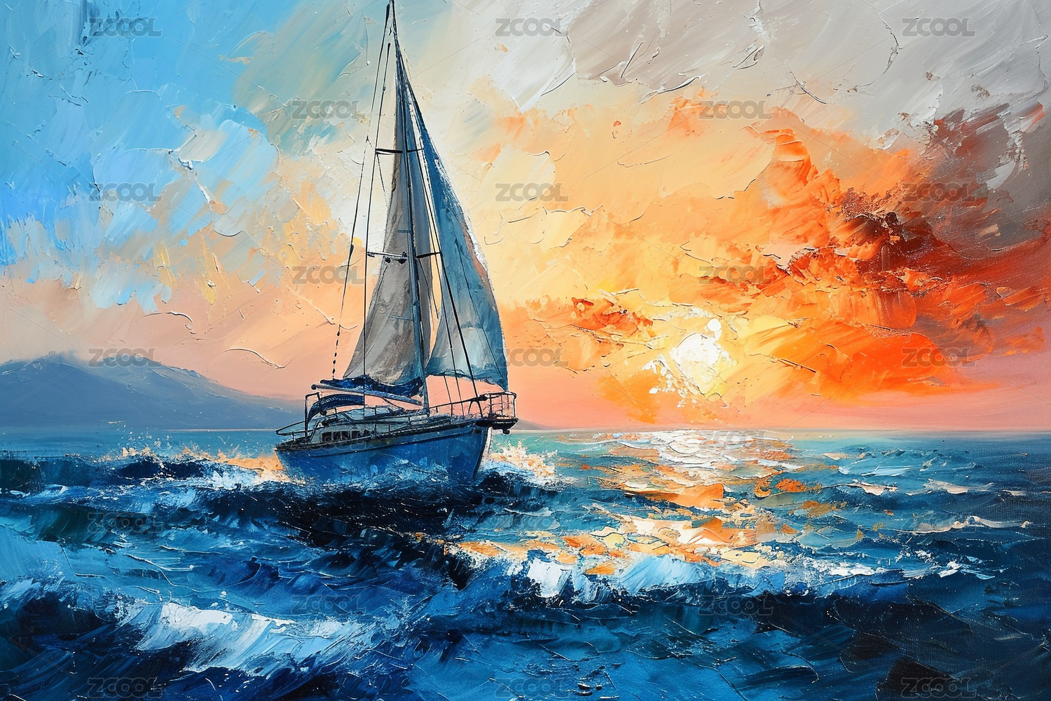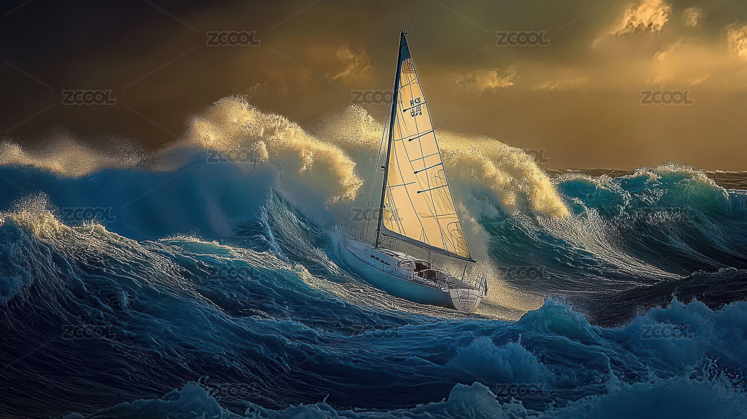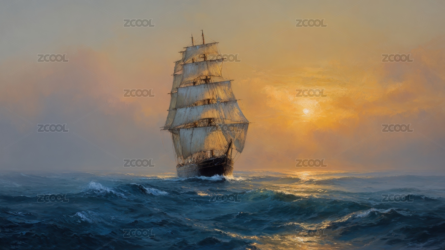油画,海上,航行,风景画,帆船,海浪,壮观