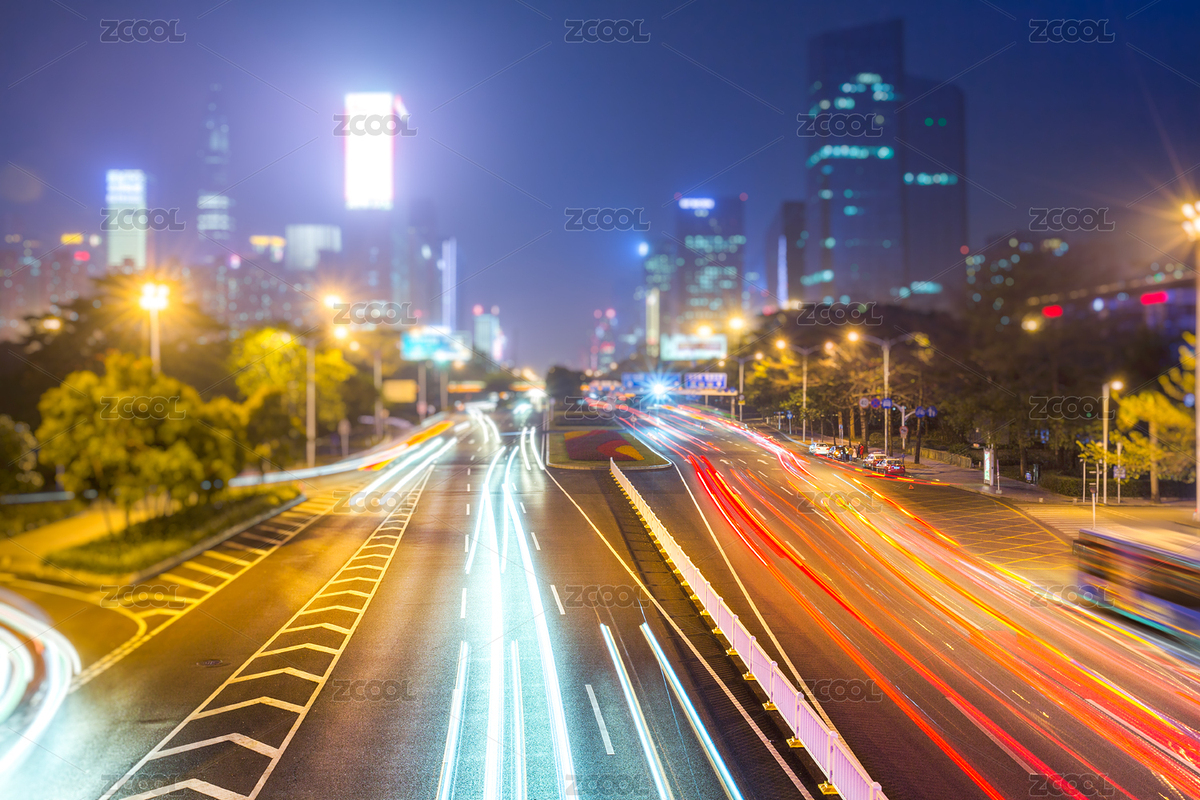 深圳现代建筑夜景和城市街道车流光影轨迹