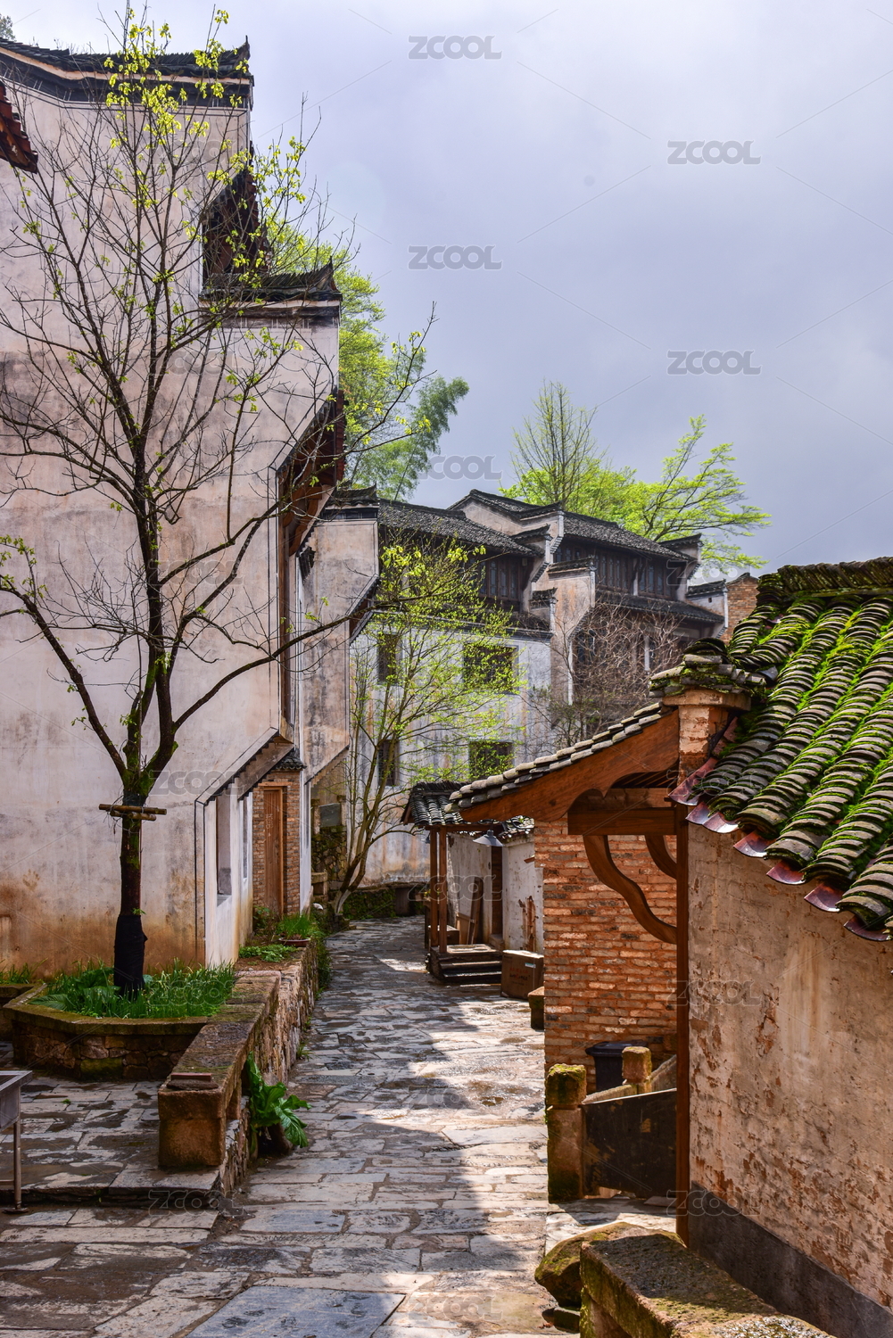 皖南徽派民居巷子,中国安徽黟县卢村木雕楼景区
