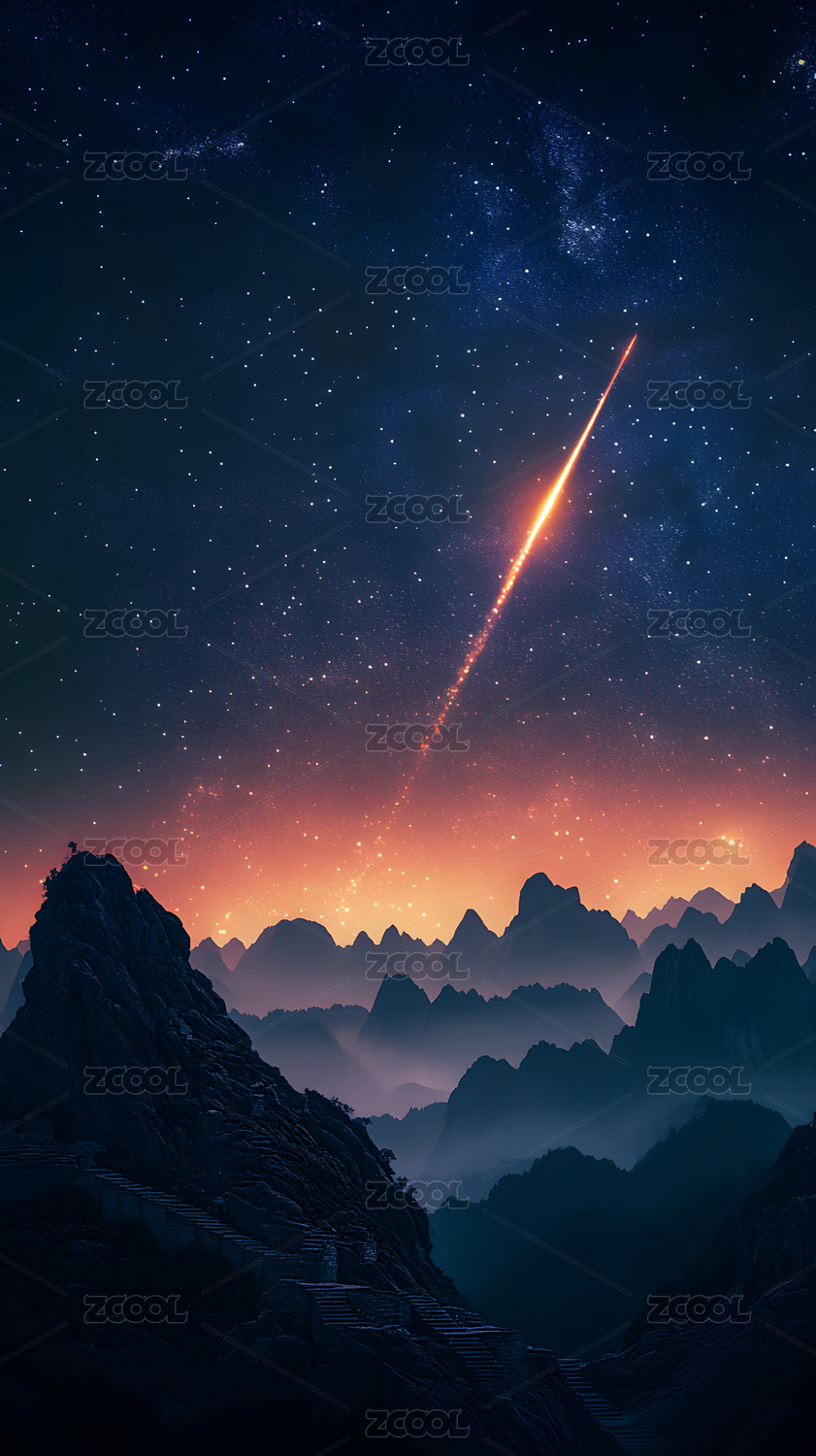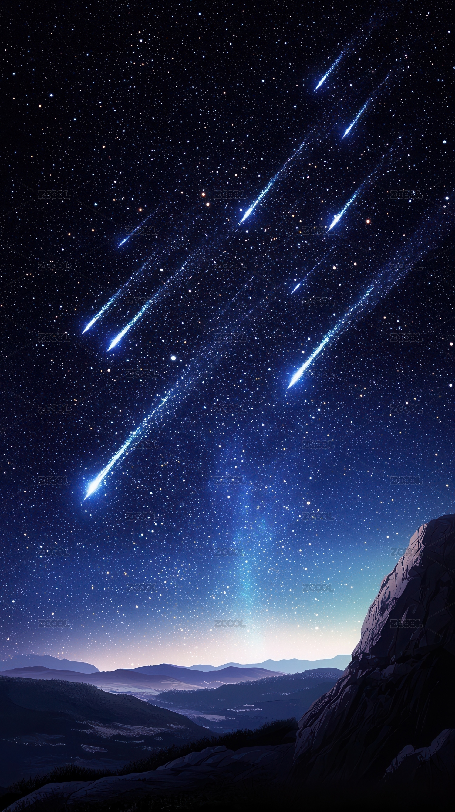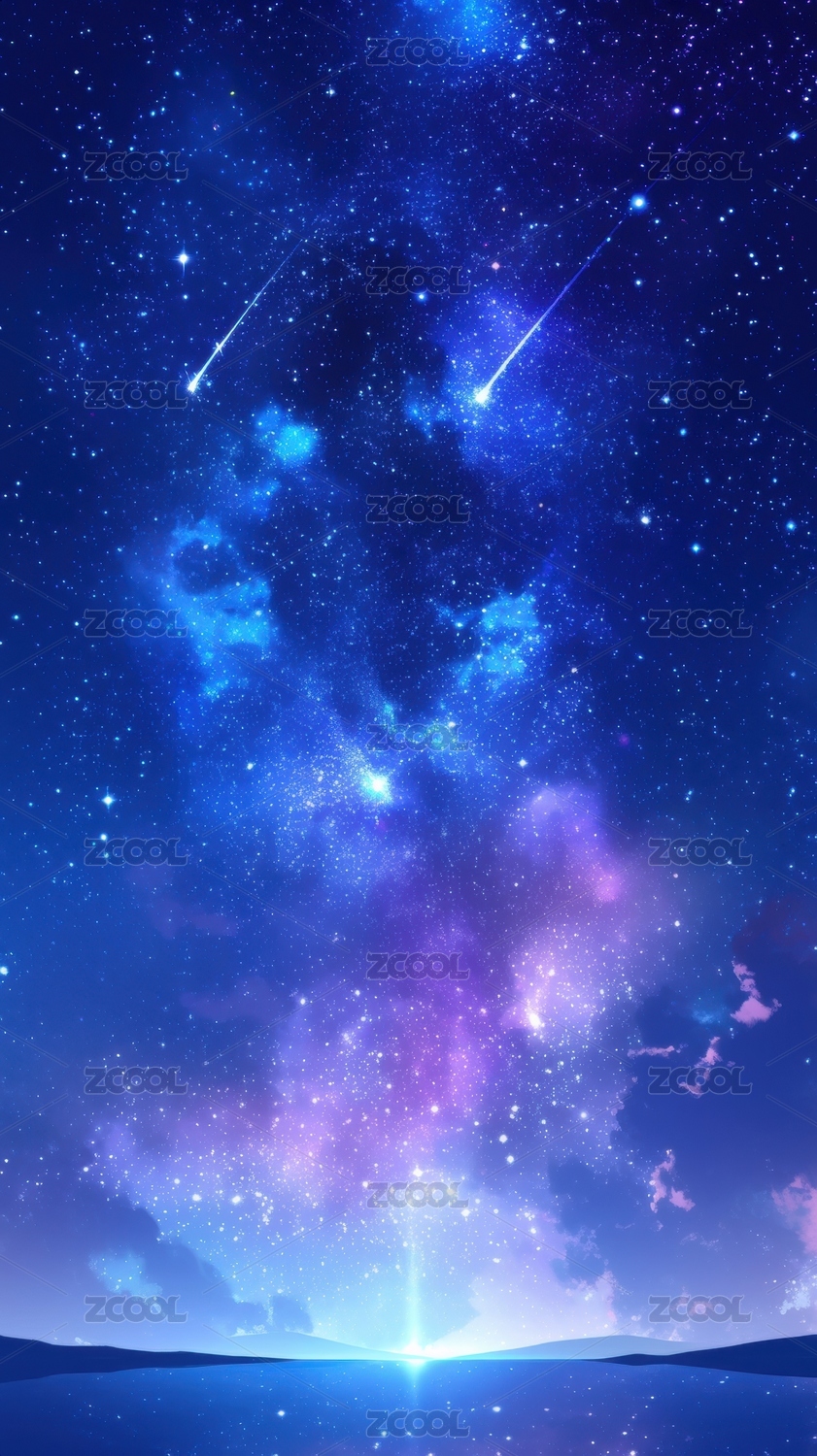 手绘唯美的抽象艺术感夜晚天空风景插画