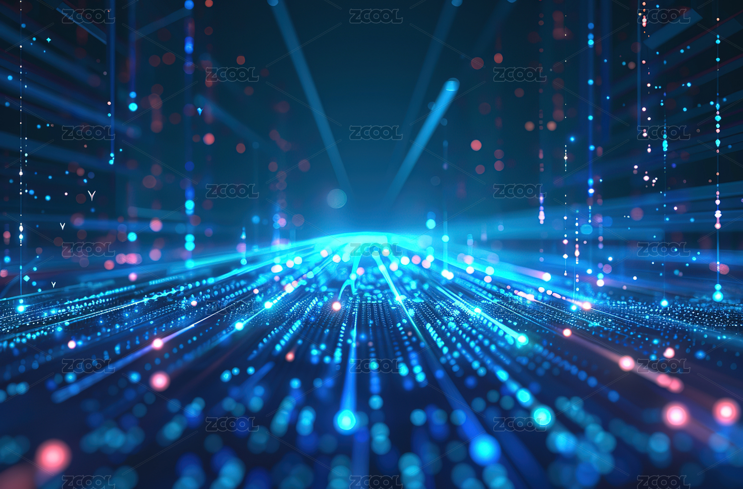 蓝色能量粒子隧道模糊散景发光明亮抽象背景