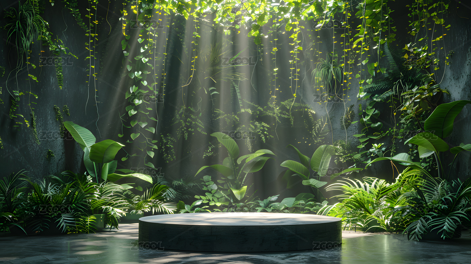 展台,聚光,平静,静谧,聚光灯,植物,装饰,自然光,简洁,干净