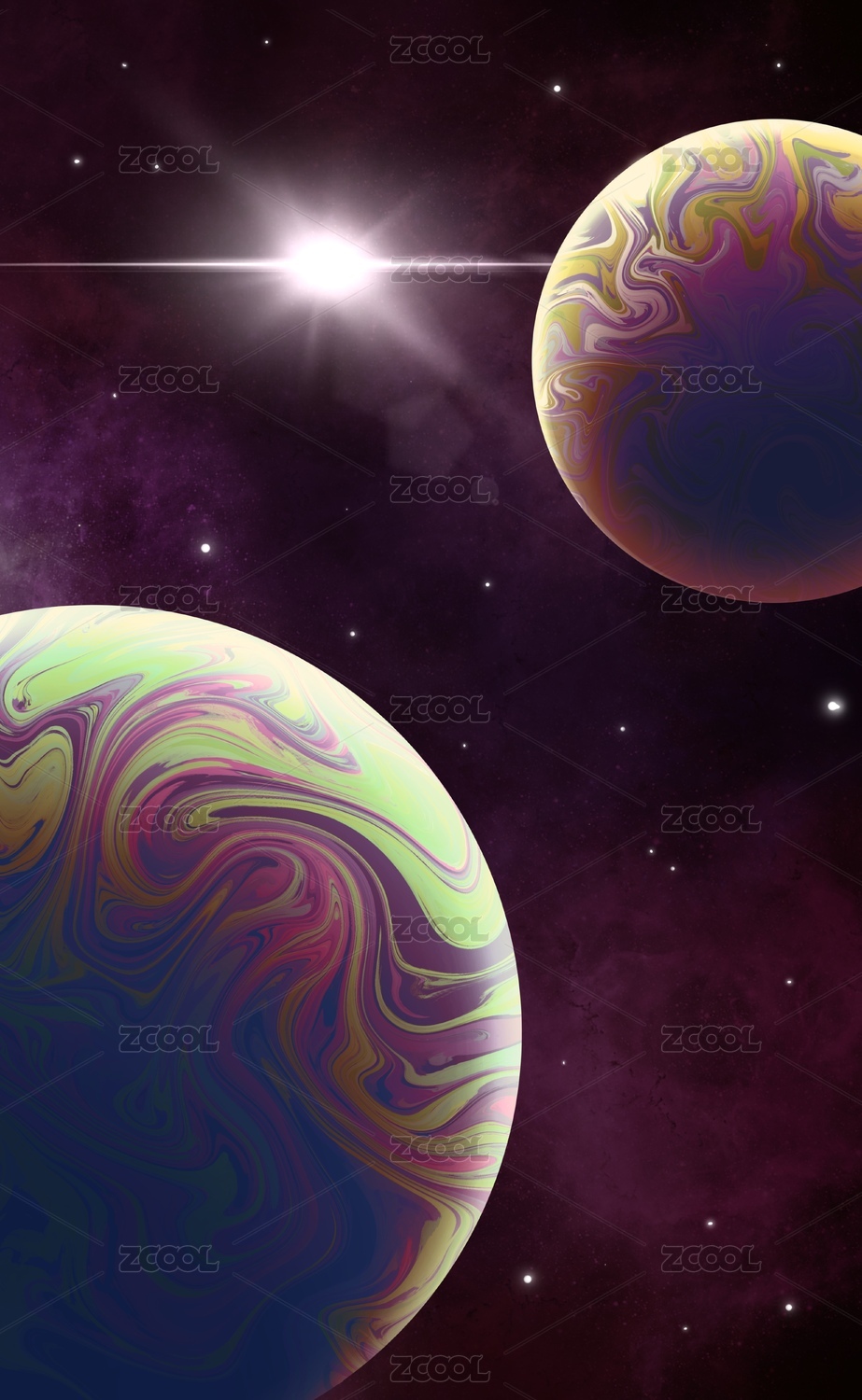 多彩星球在宇宙中的旋转