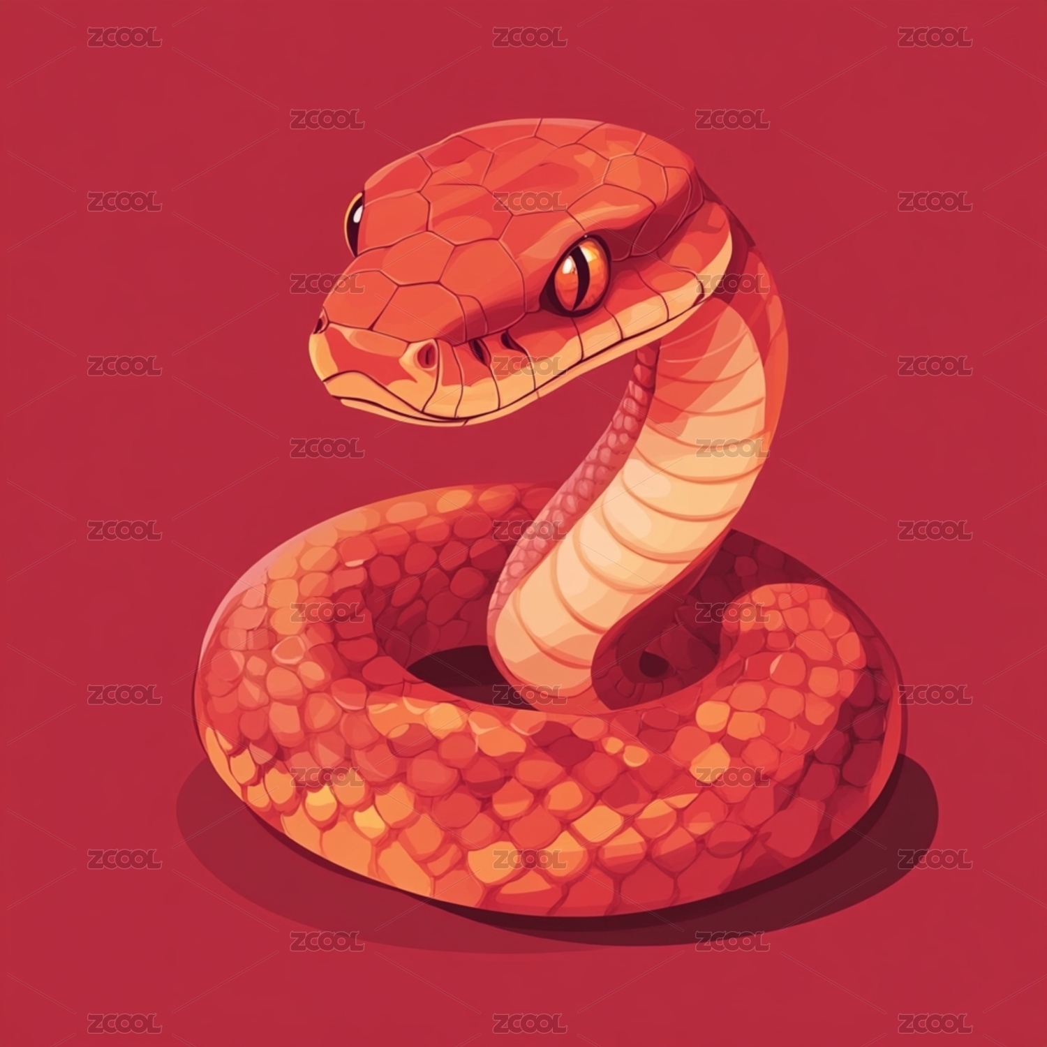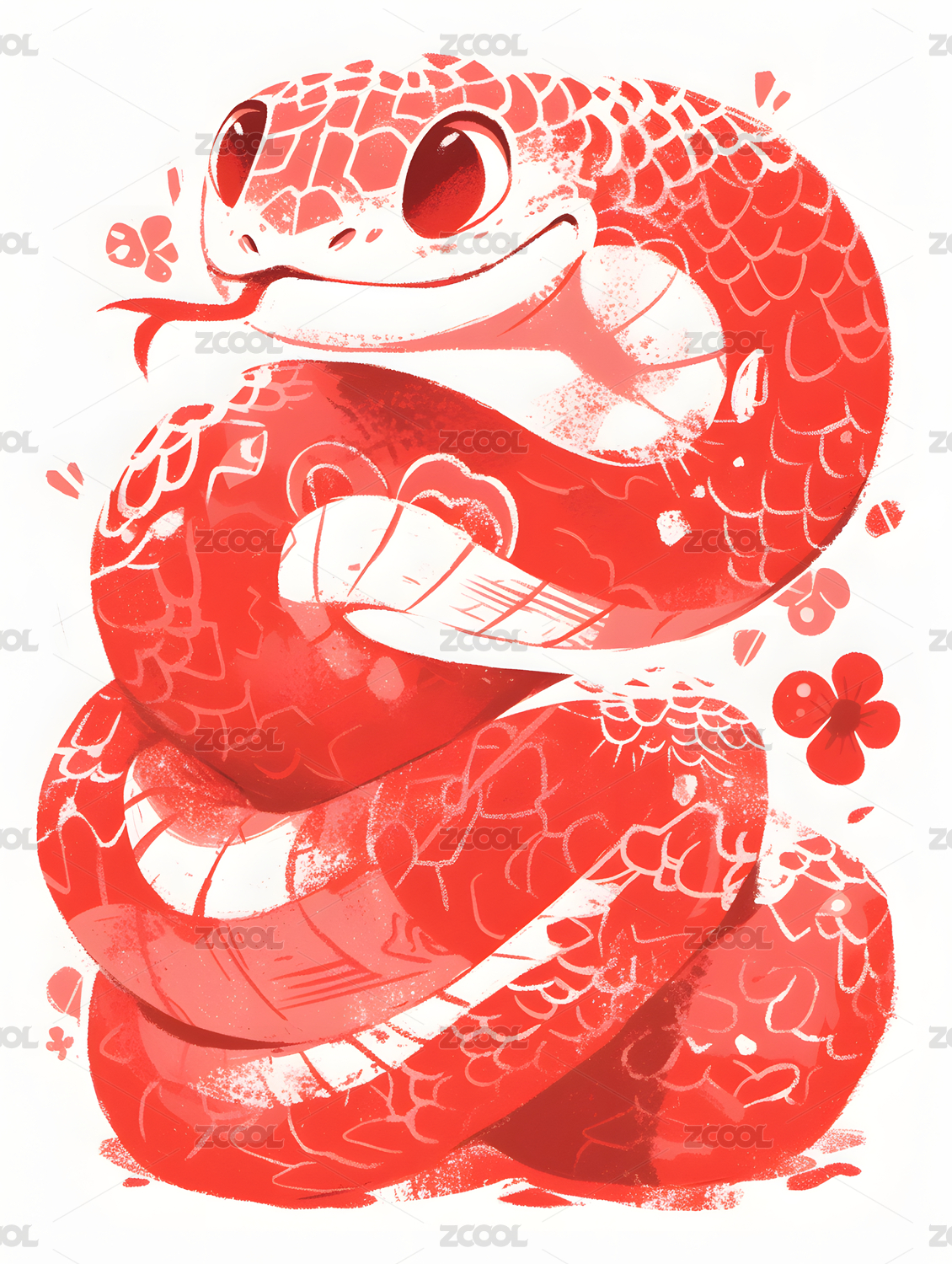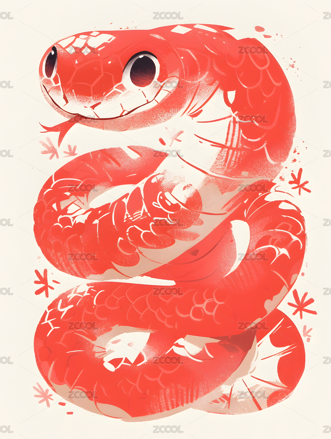 蛇年卡通红色艺术生肖插画
