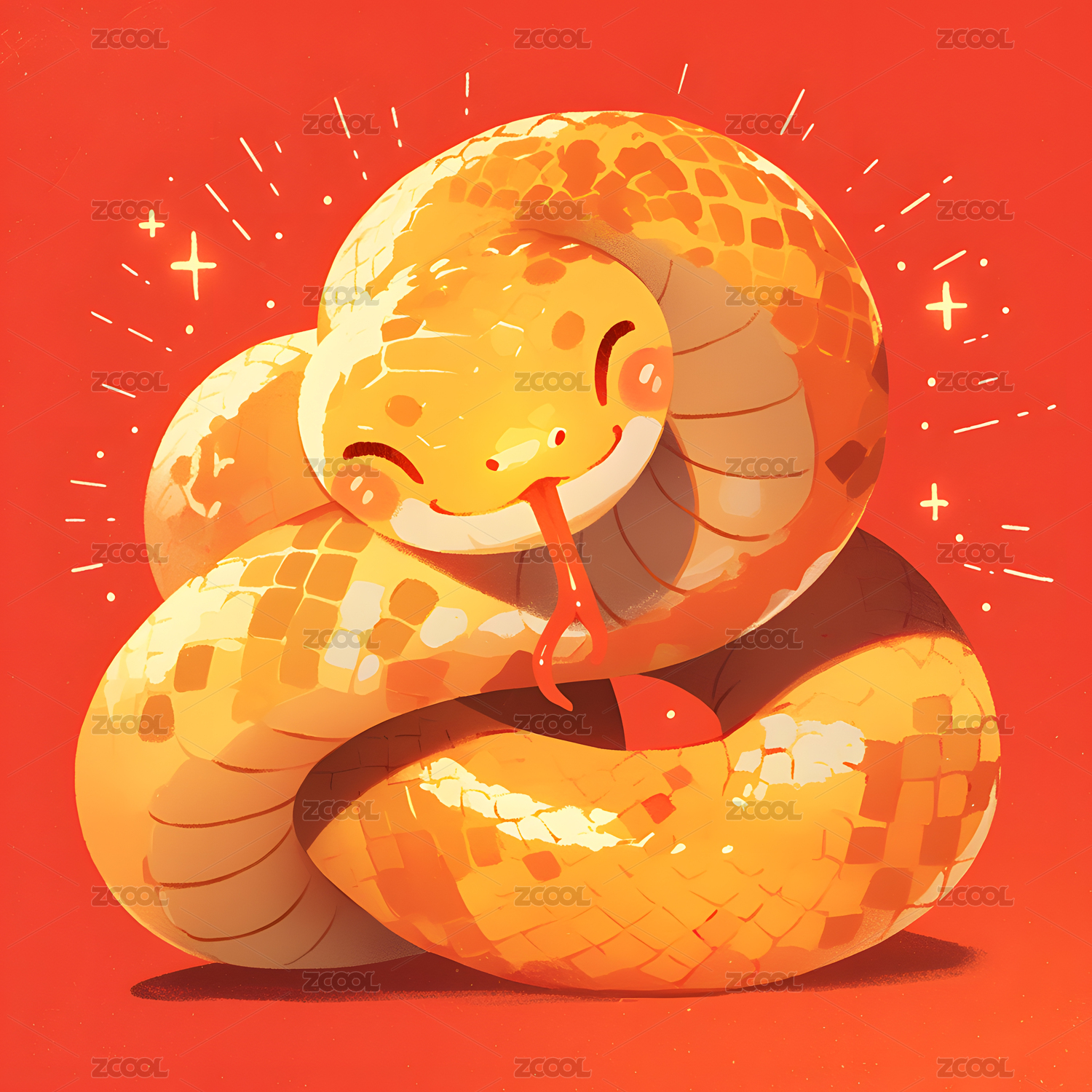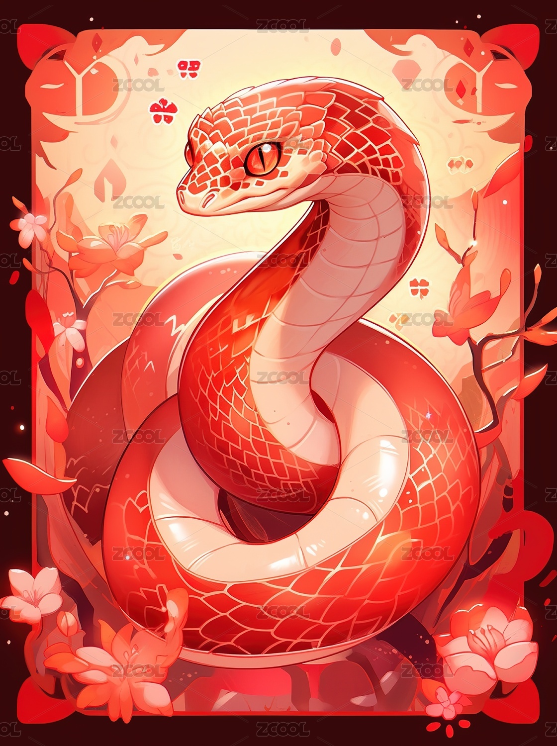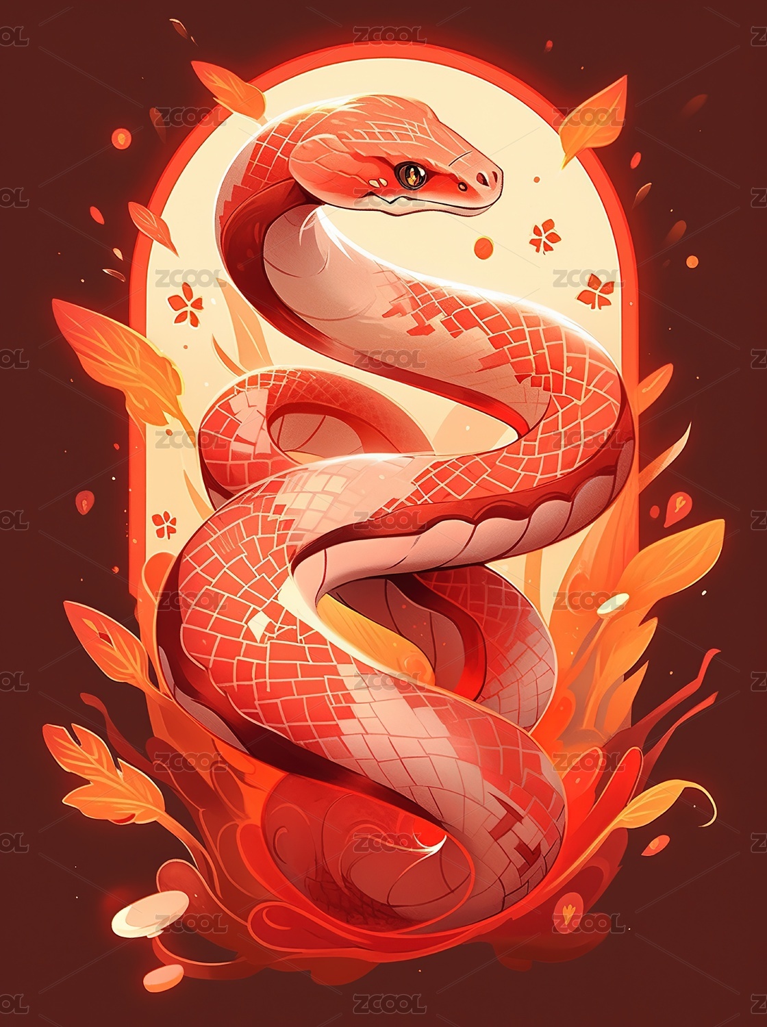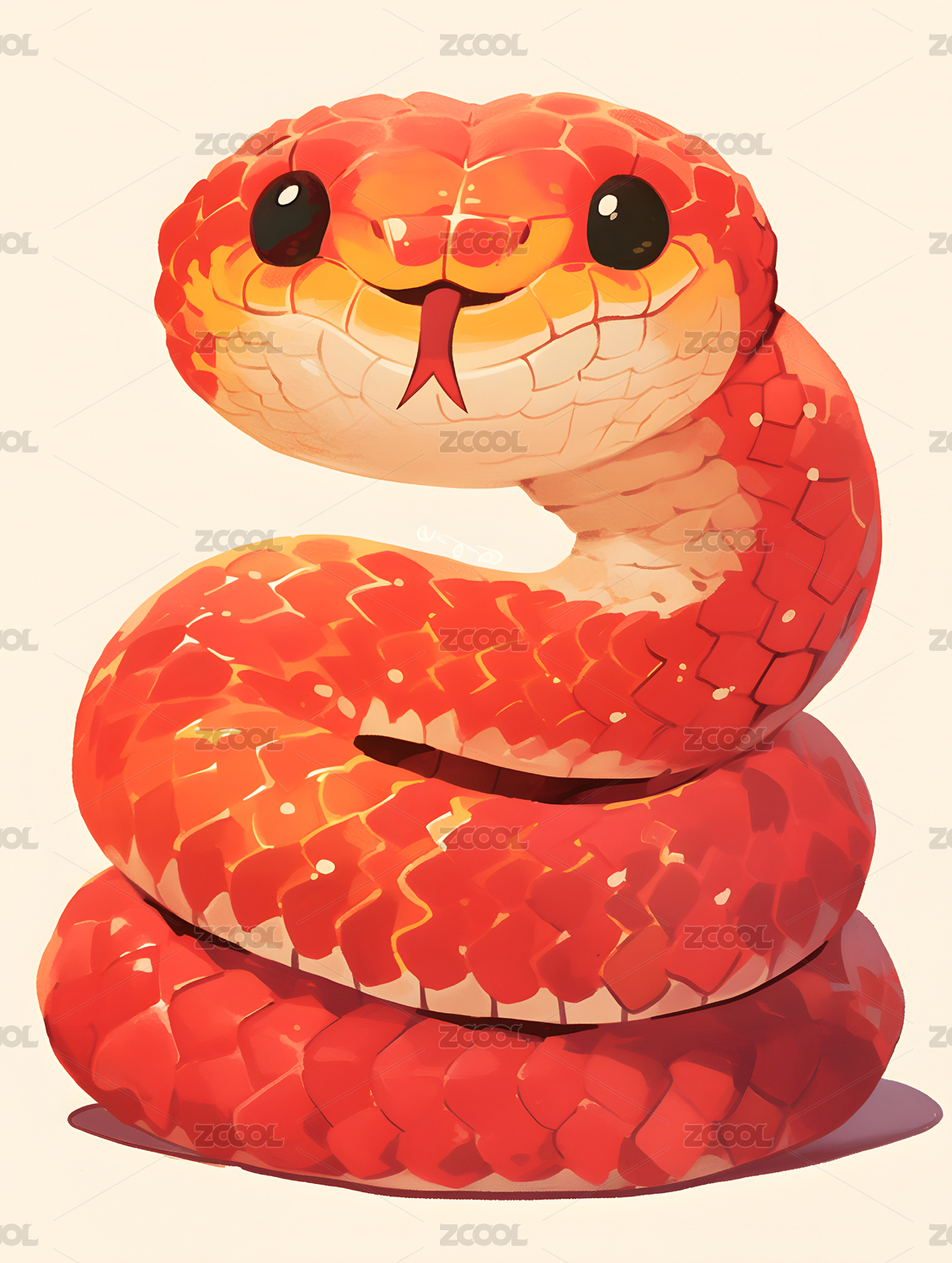 蛇年卡通红色艺术生肖插画