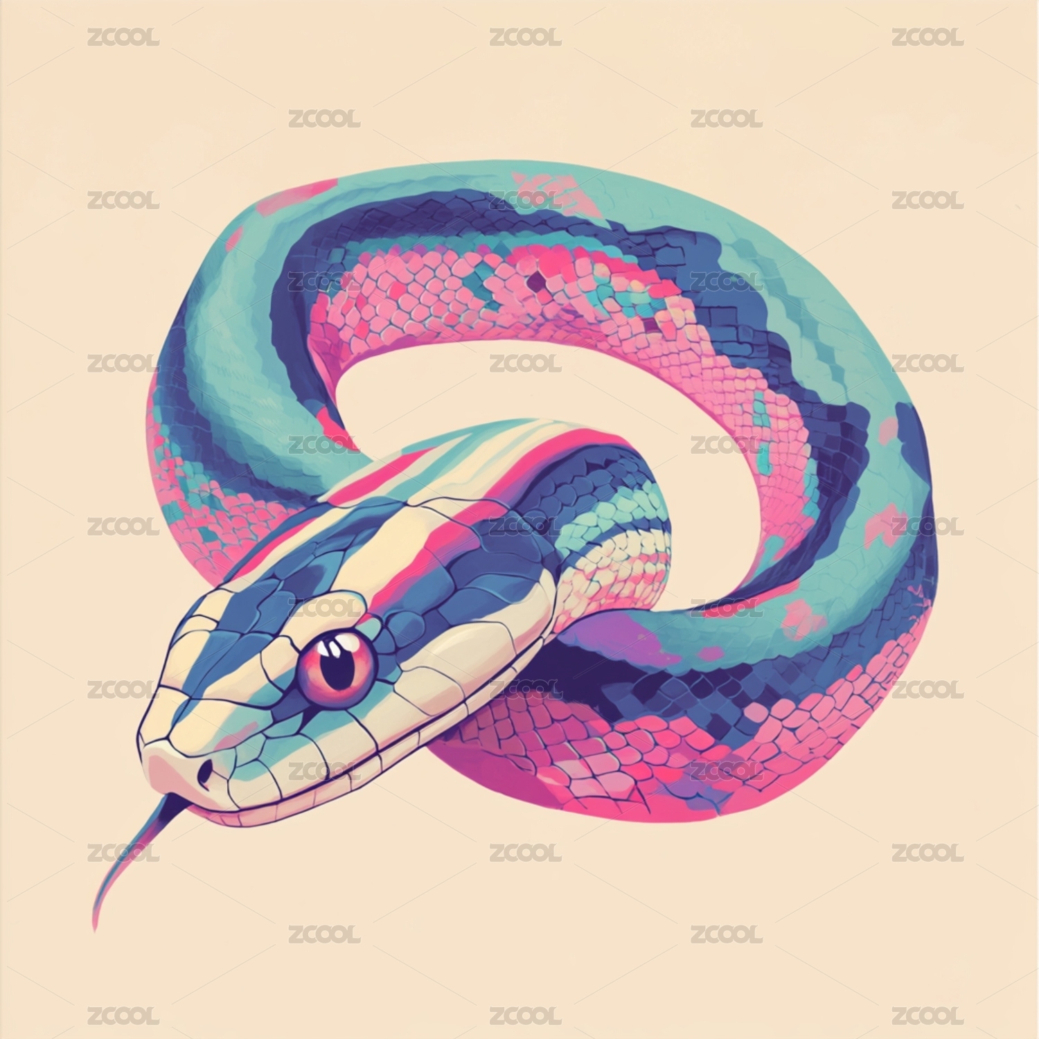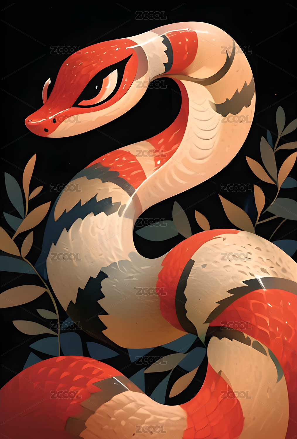蛇年主题灵动缠绕的蛇壁纸插画艺术
