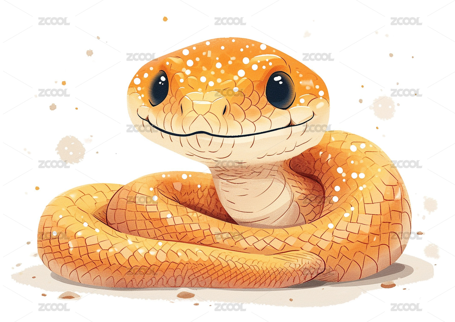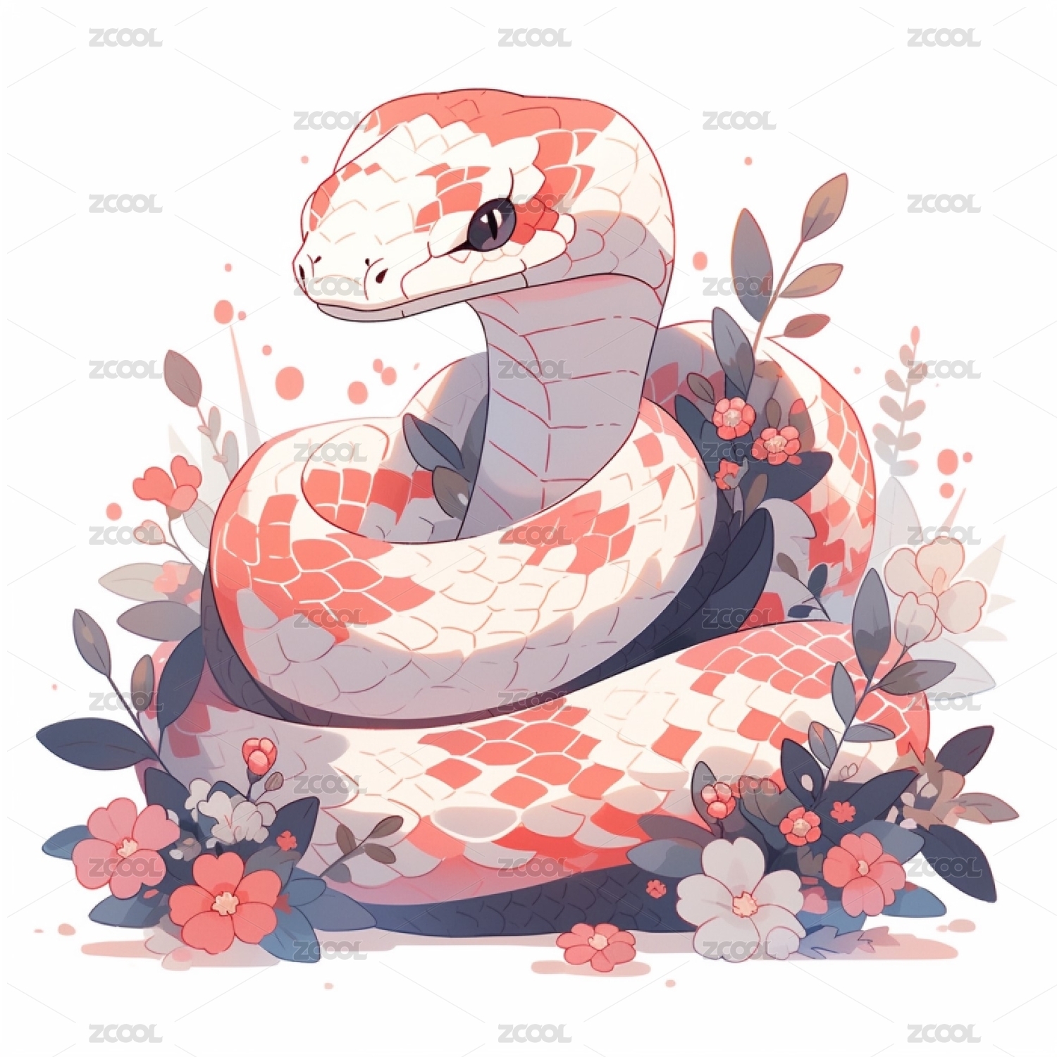 卡通可爱蛇白色背景日系插画动画角色