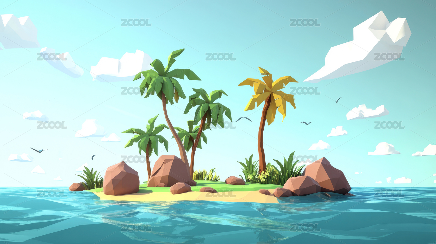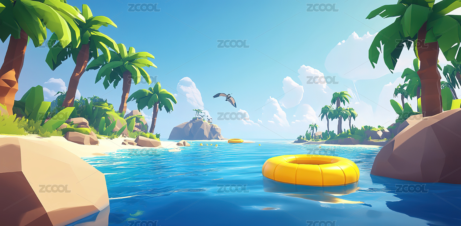 无人,户外,水,游泳池,天空,棕榈树,夏天,风景,白昼,AI数字艺术