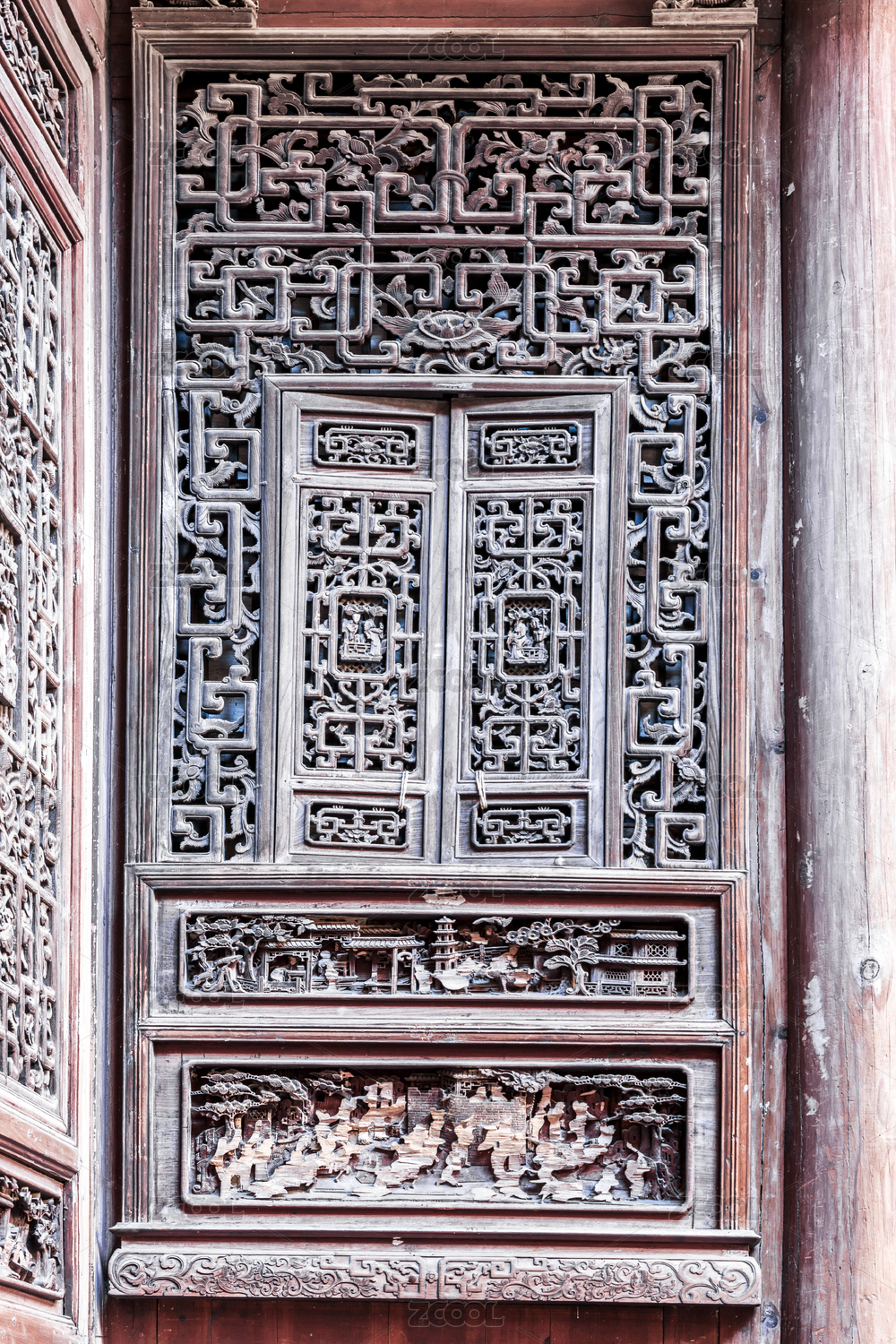 中国安徽省黟县卢村木雕楼中式镂空雕花门窗