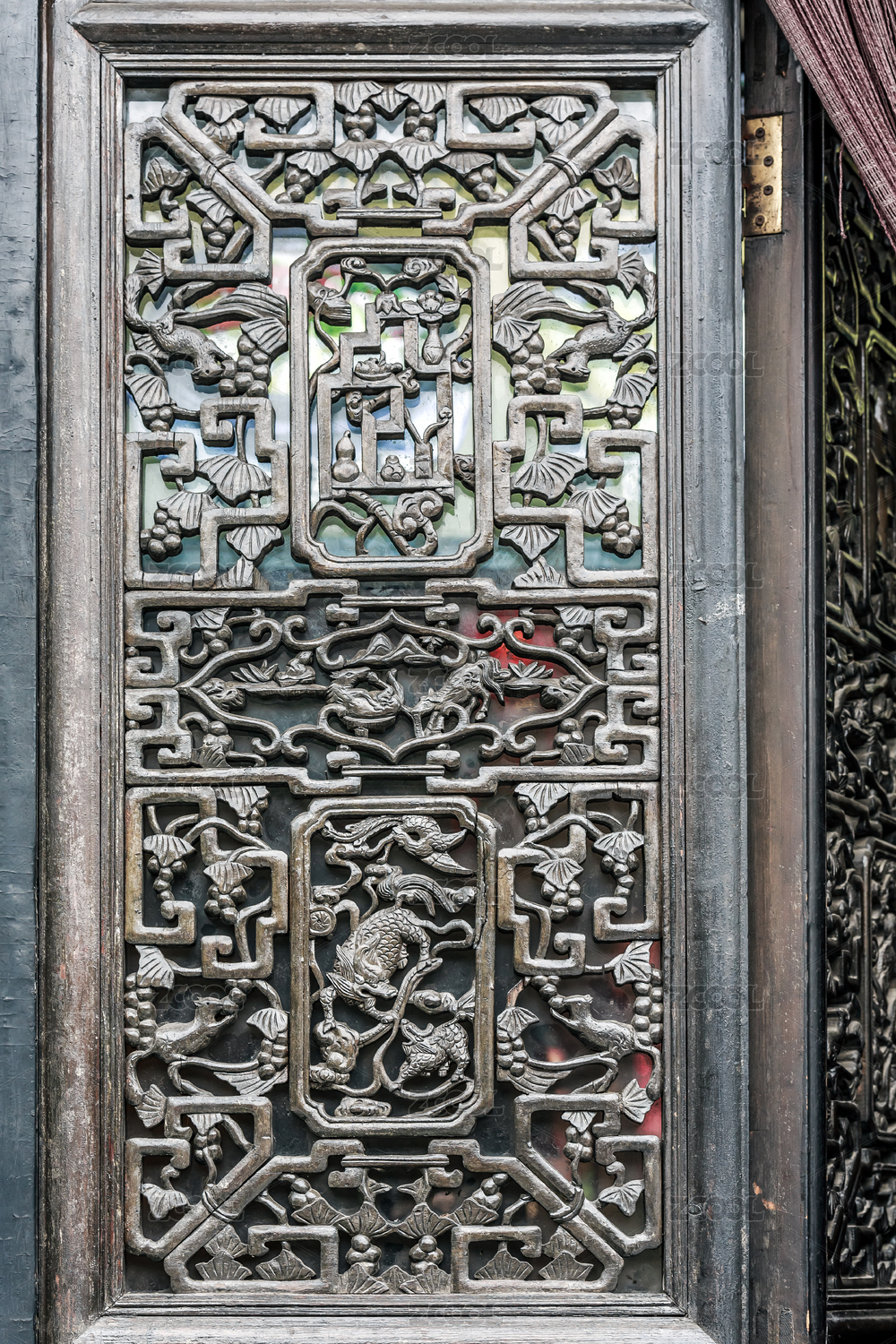 中国江苏泰州溱潼古镇山茶院冰裂纹木雕