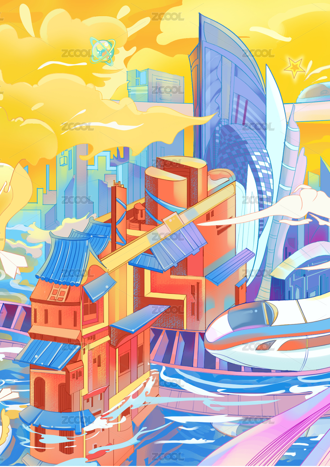 端午节吃粽子赛龙舟海浪建筑云彩烟雾