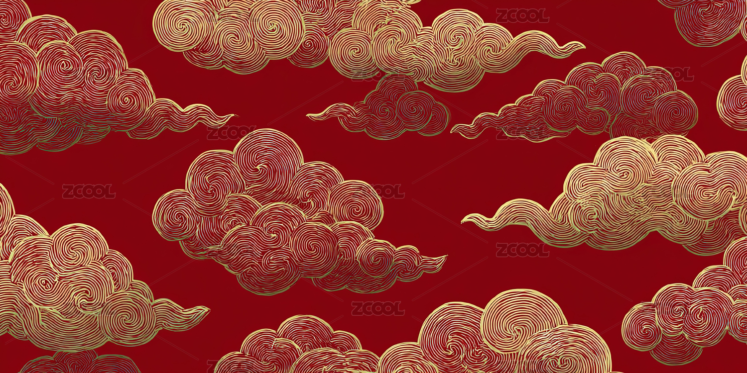 红色背景中式云纹图案