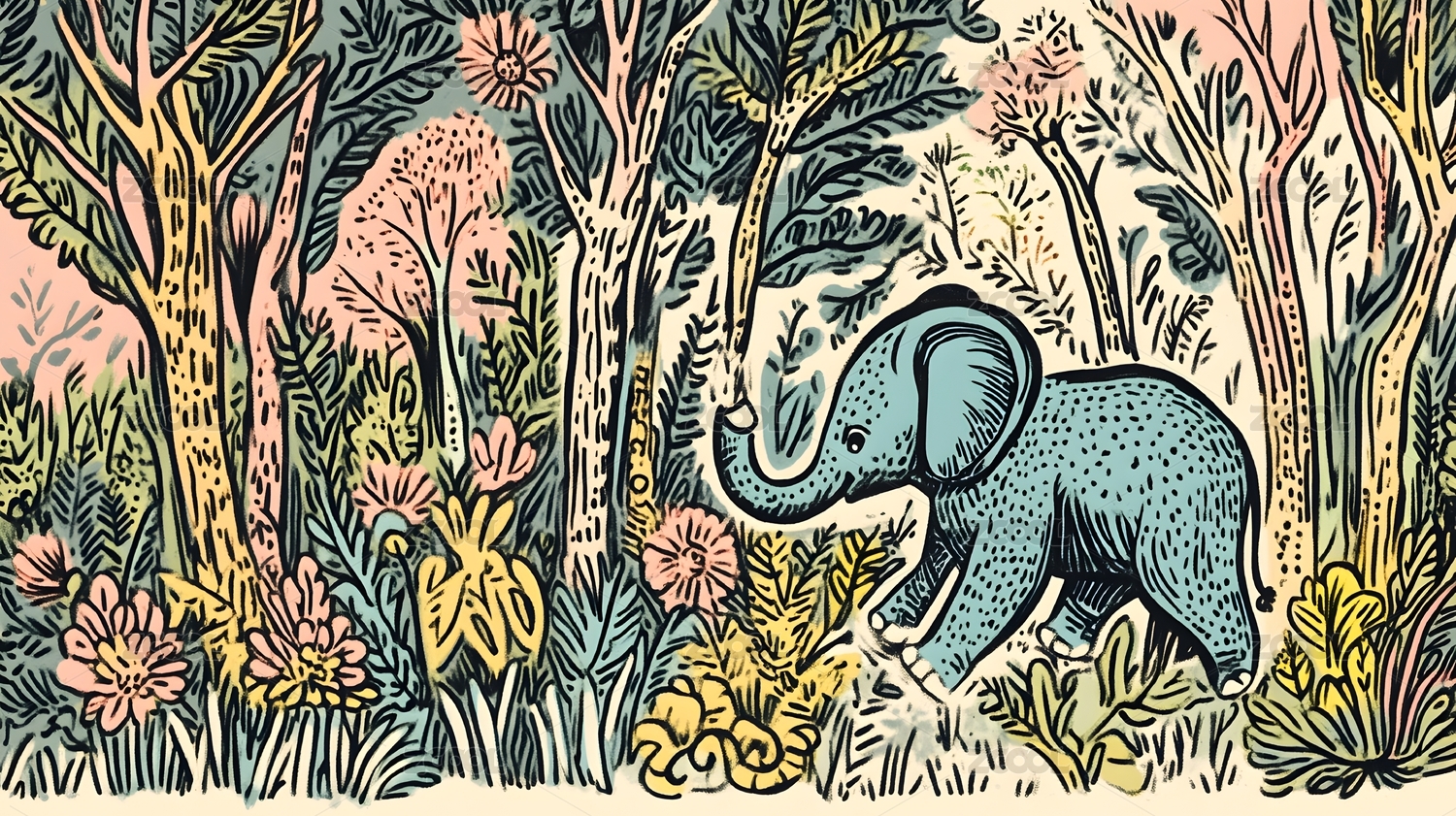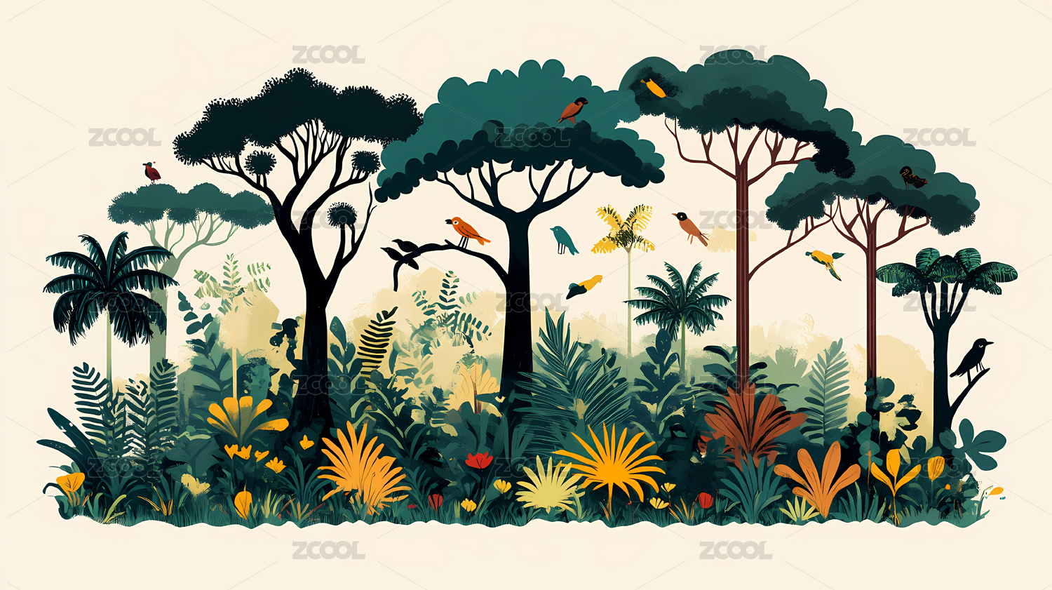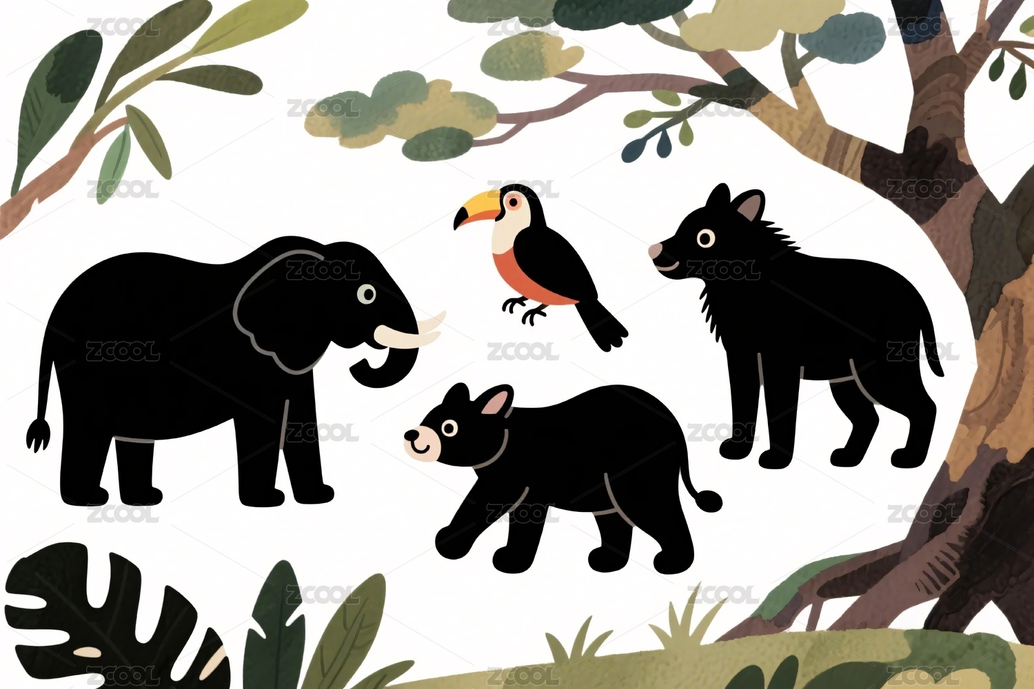 艺术,装饰,单色,景观,森林,动物,野生动物,环境,平面设计,艺术印刷