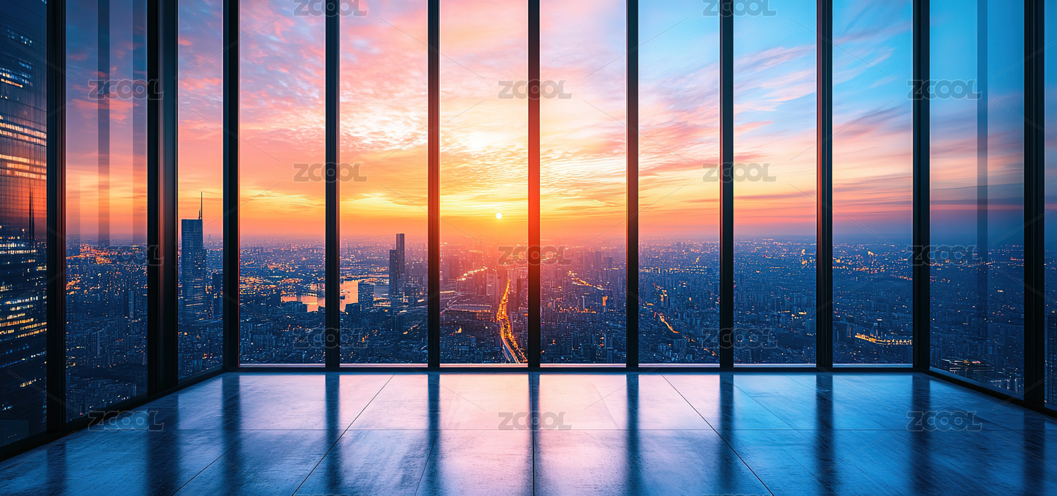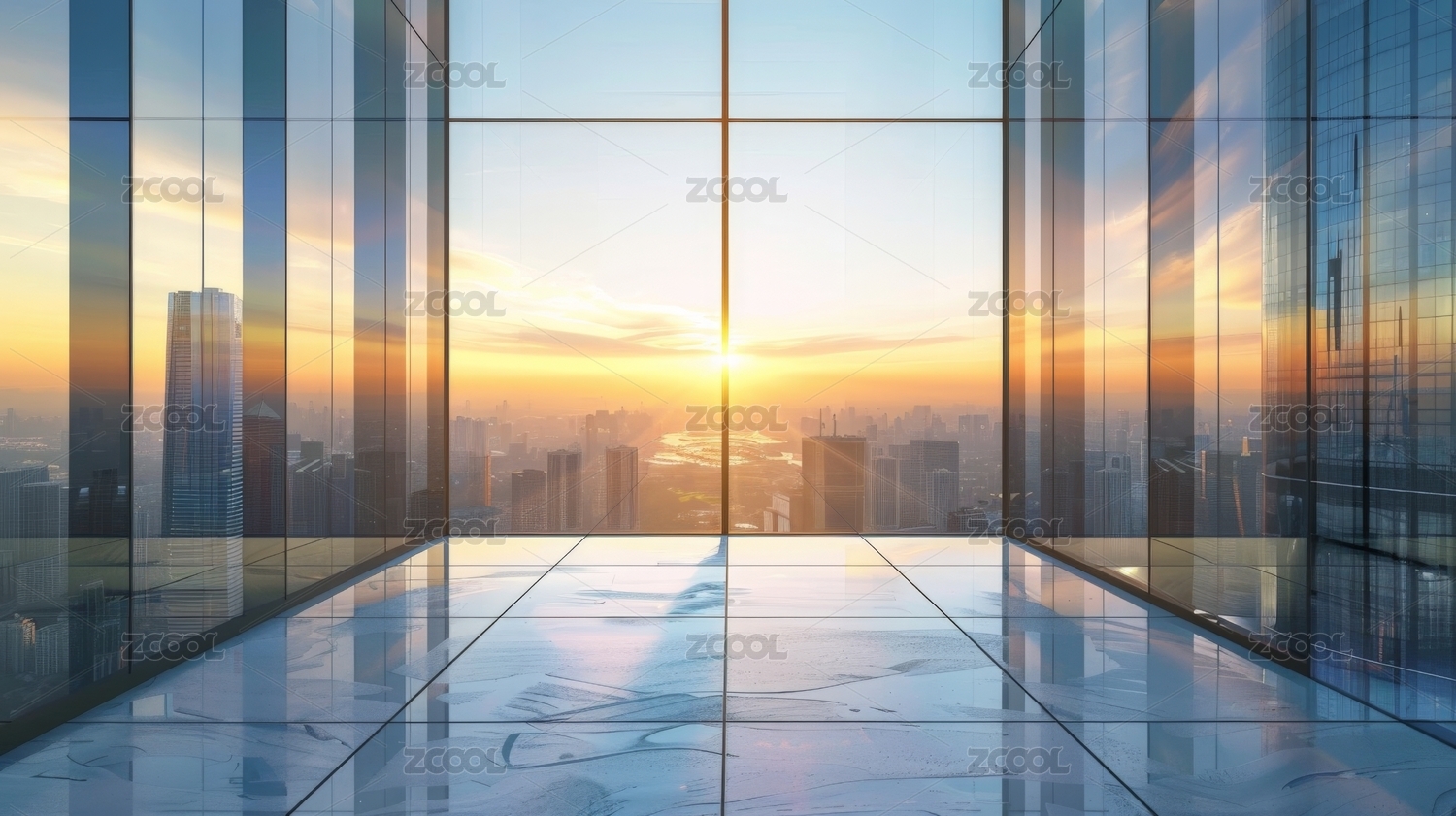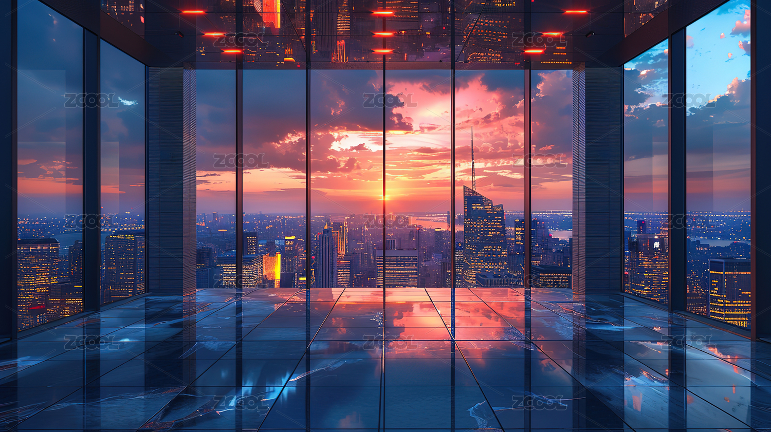 抽象插画风商业写字楼,城市天际线玻璃幕墙