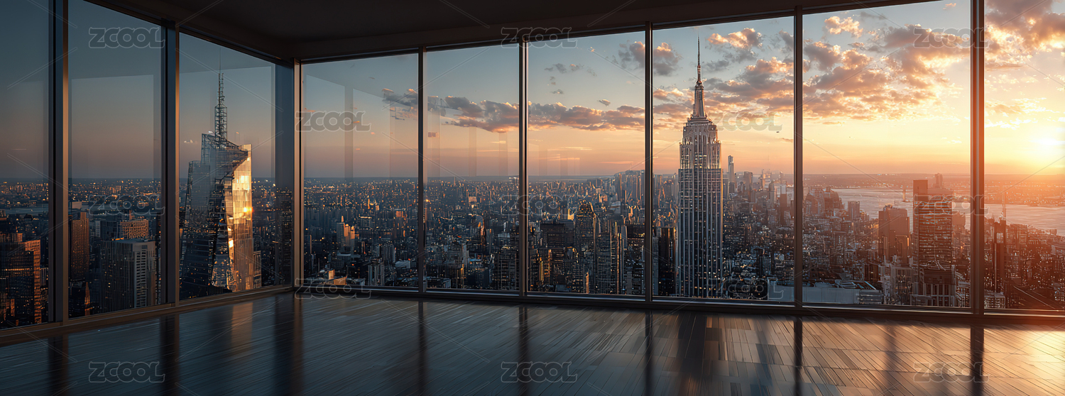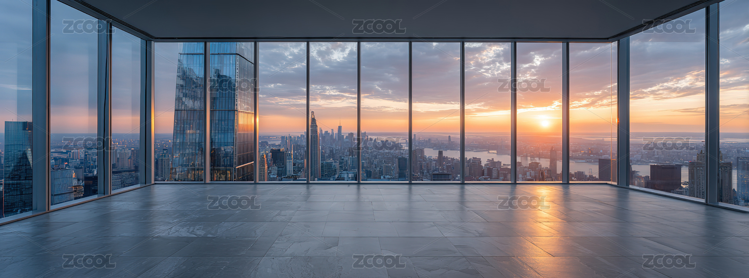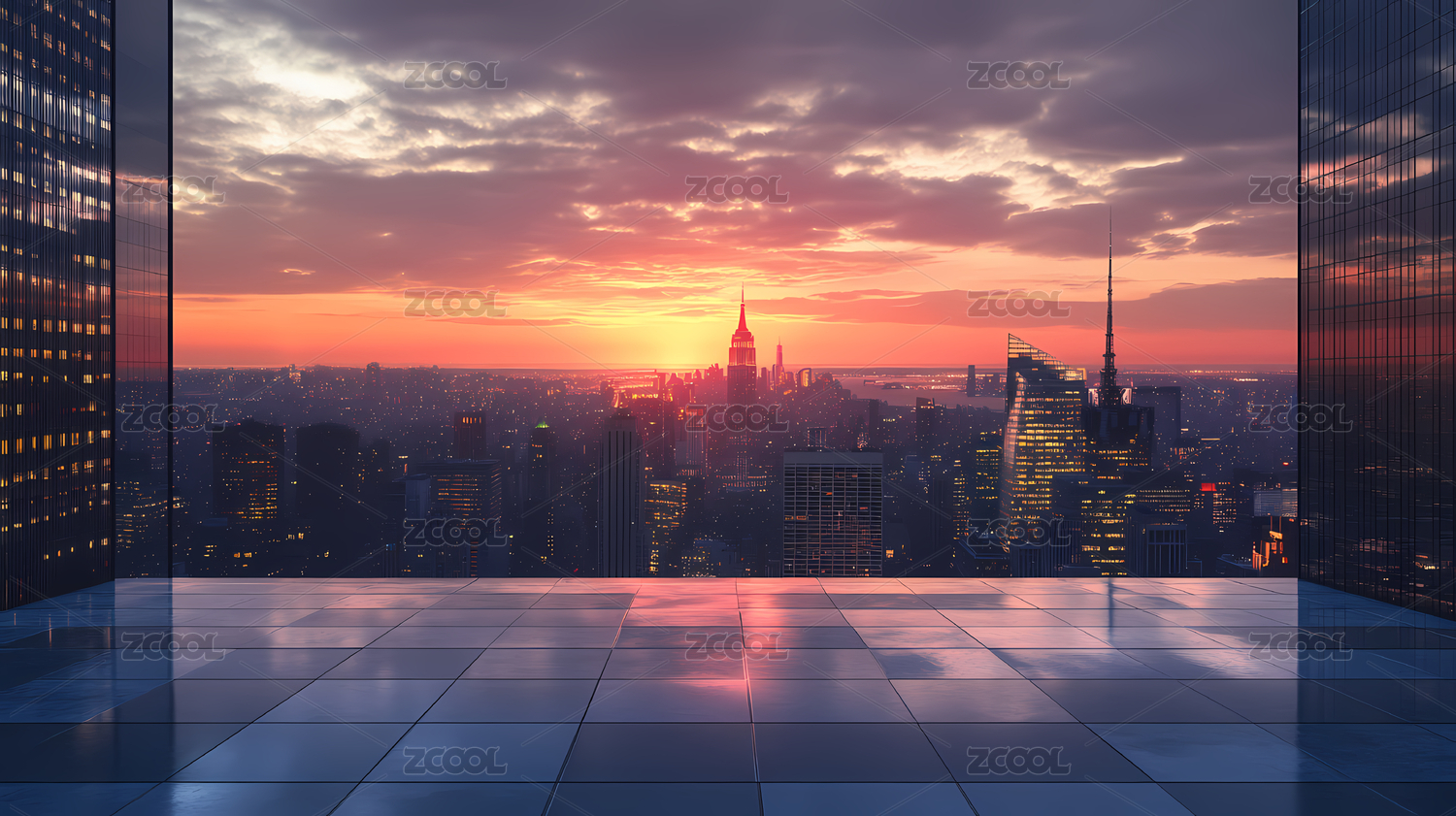 抽象插画风商业写字楼,城市天际线玻璃幕墙