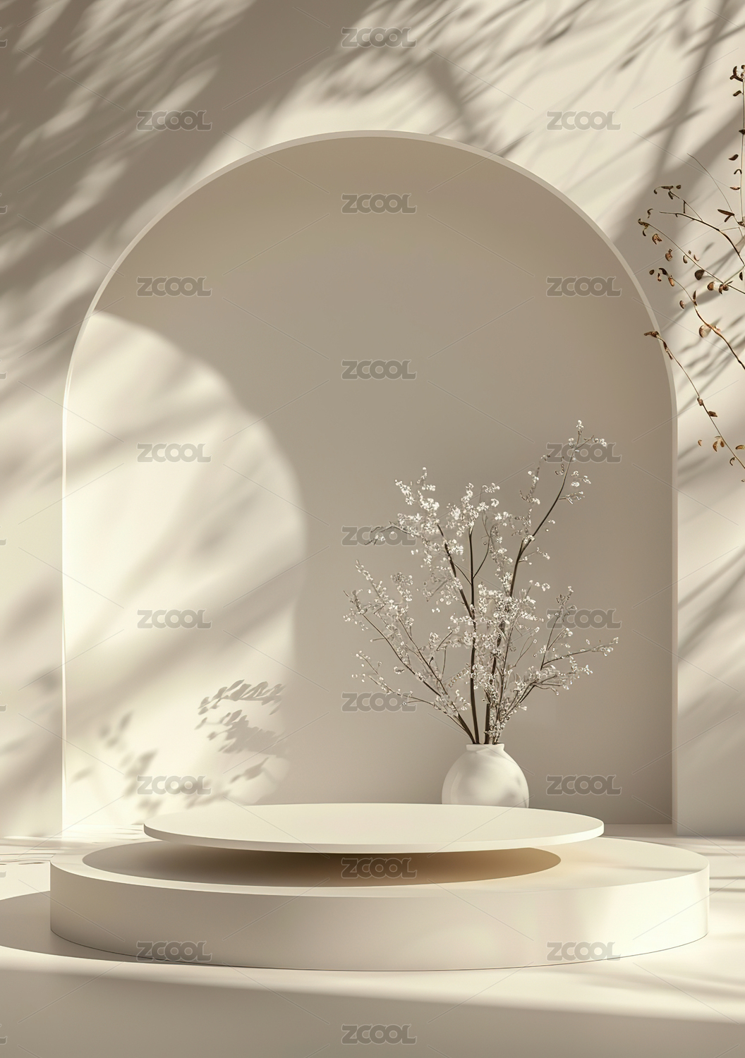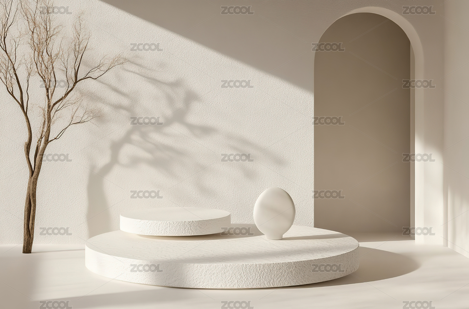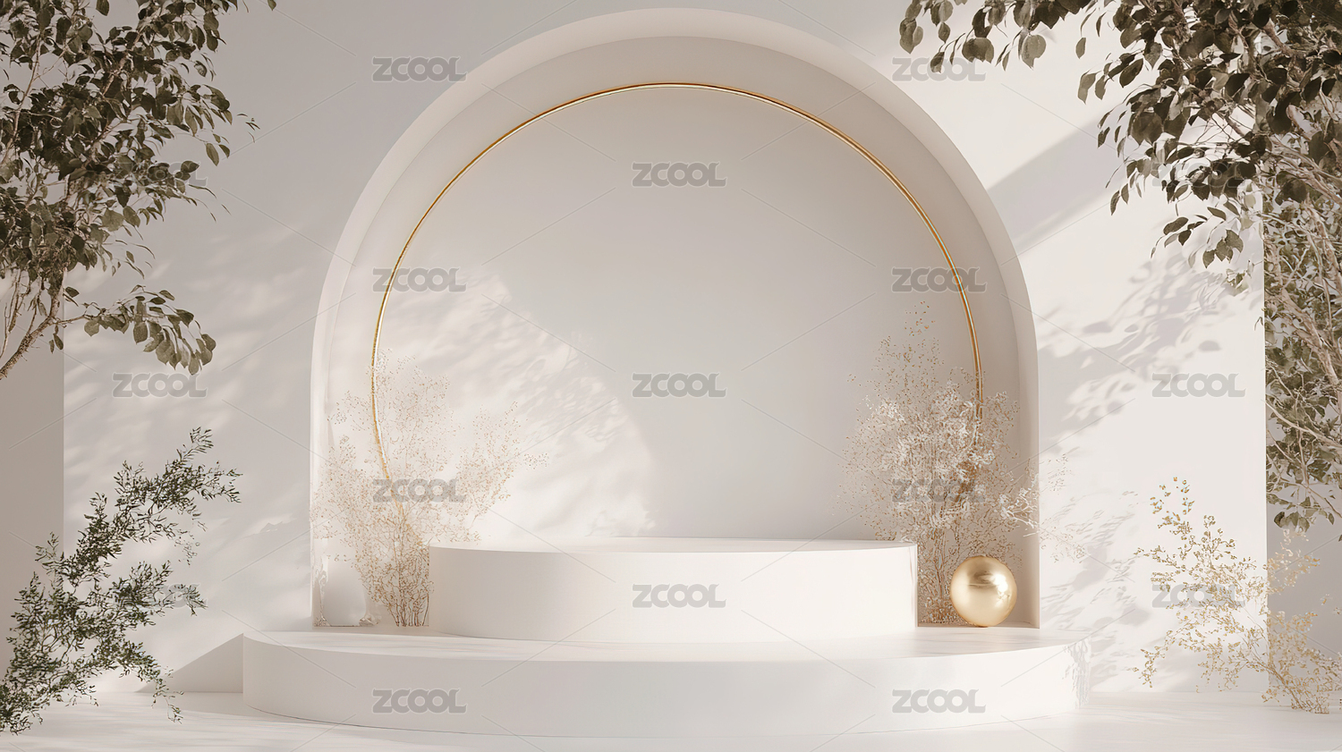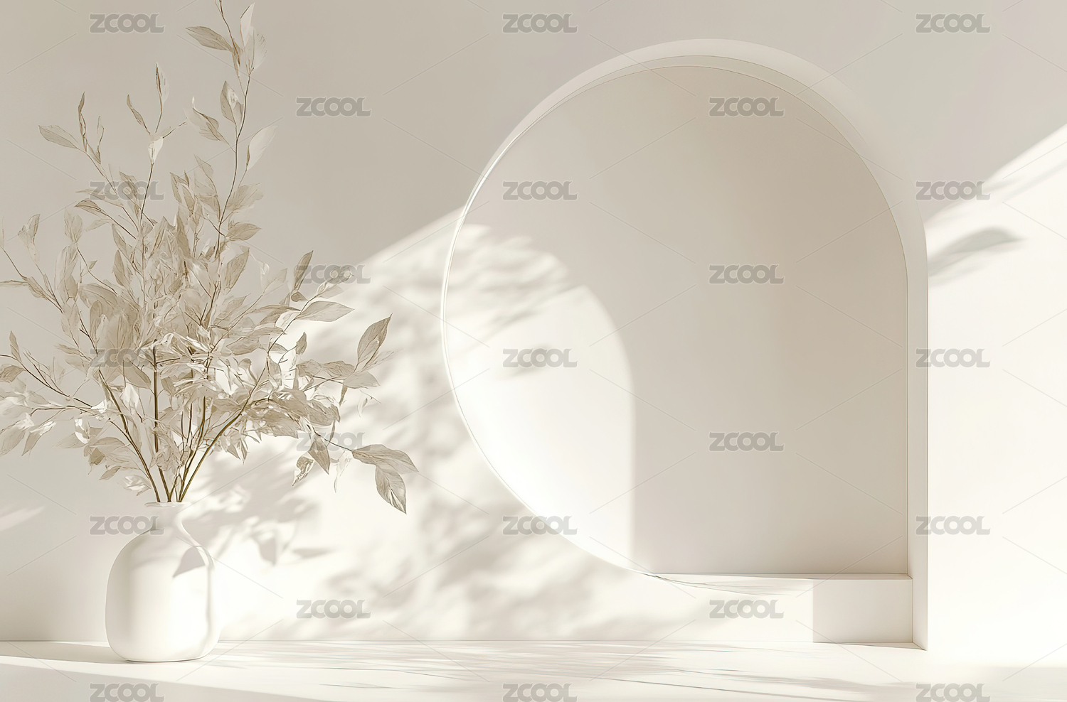 白色纱帘3D拱门创意空间电商产品展台