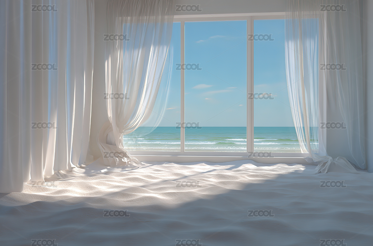海边房屋白色窗帘无人空间背景