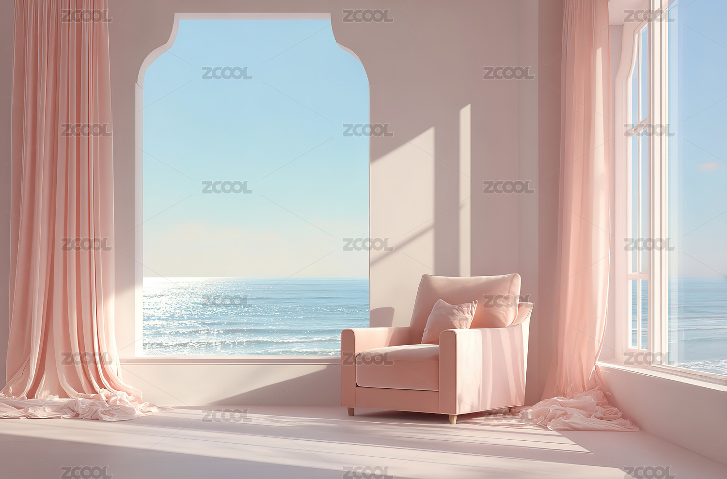 粉色房间临海窗景
