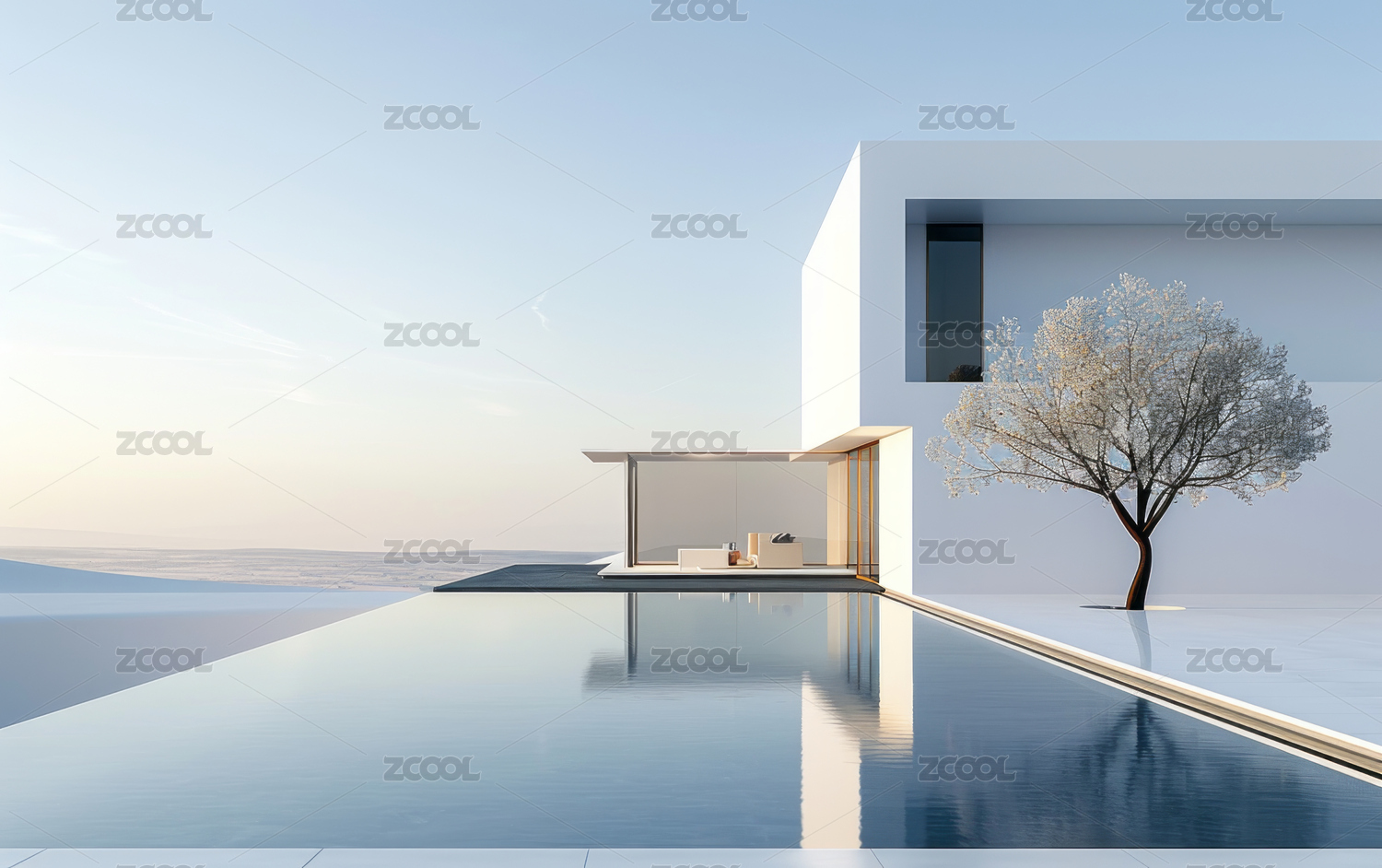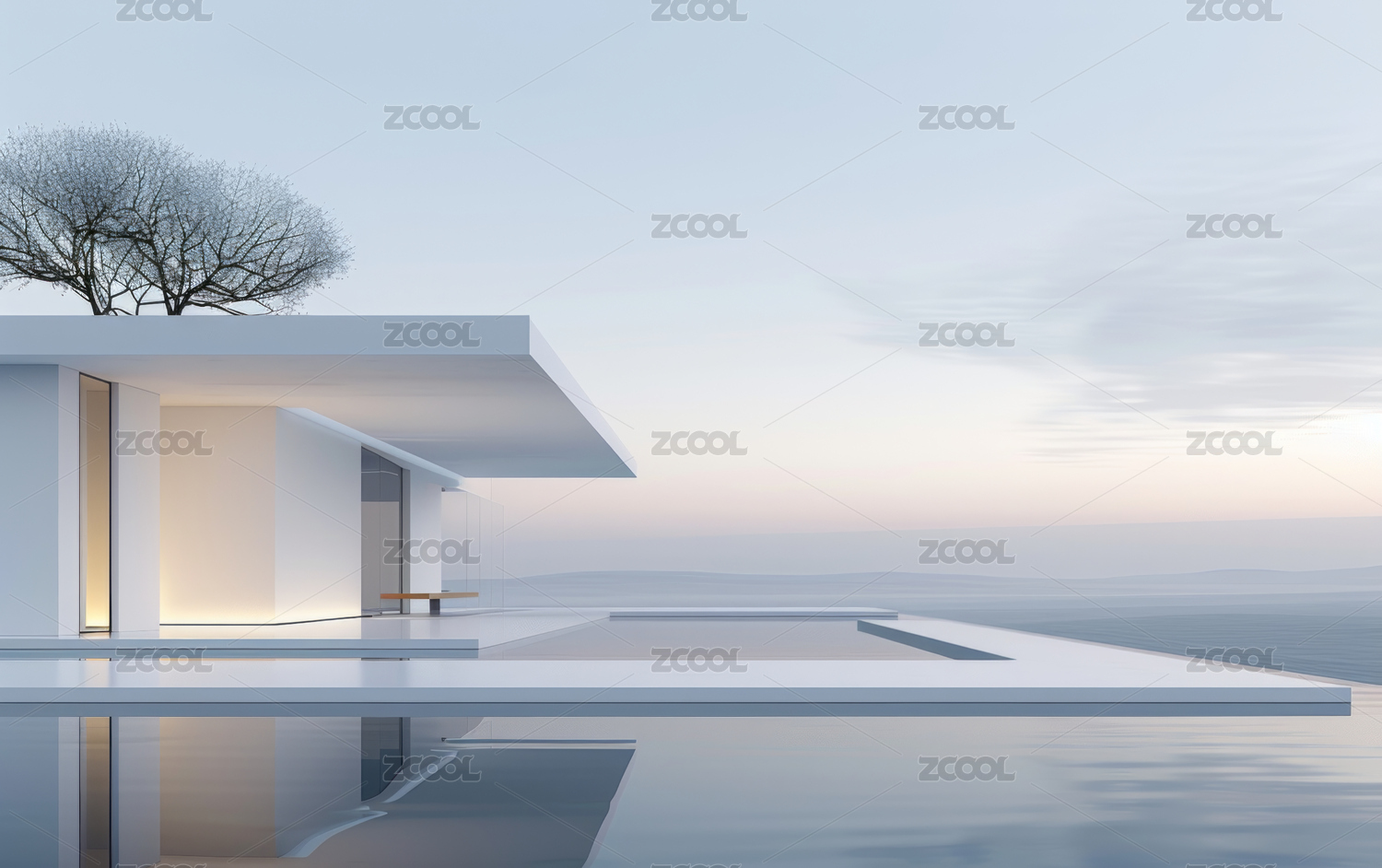 现代建筑室外设计酒店餐厅白色简约风格北欧