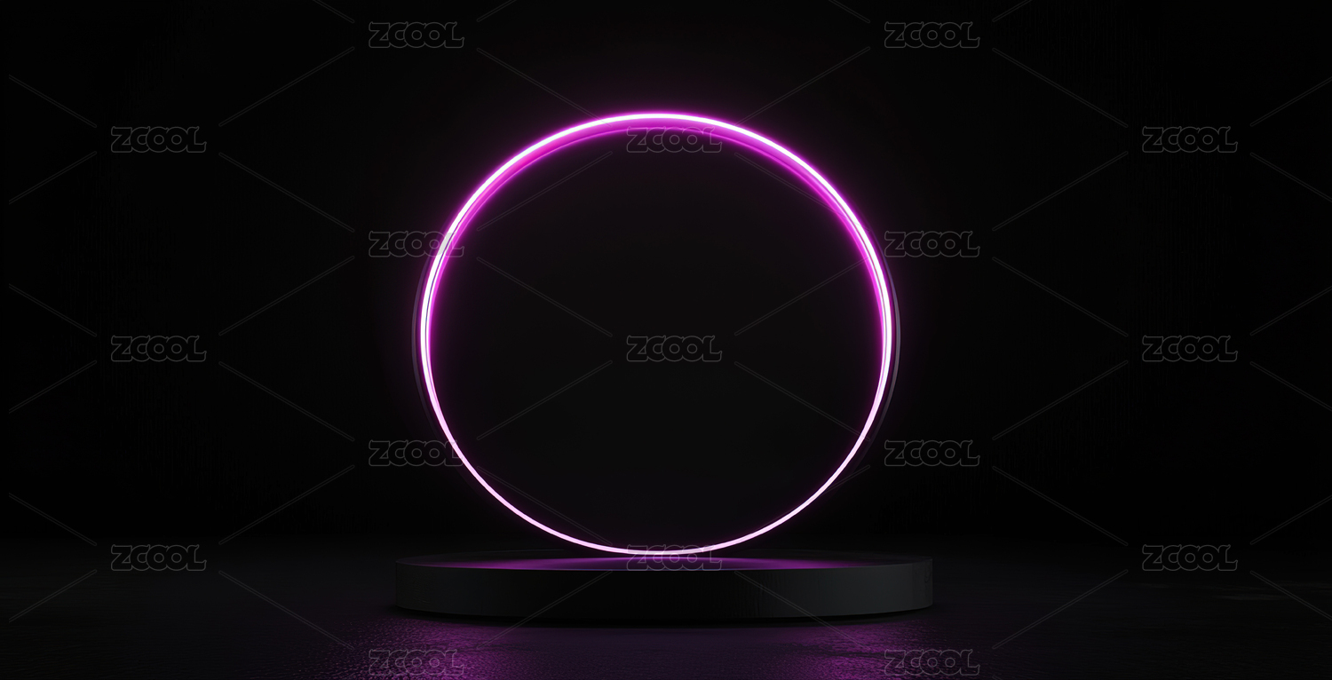 紫色霓虹灯下的圆形舞台