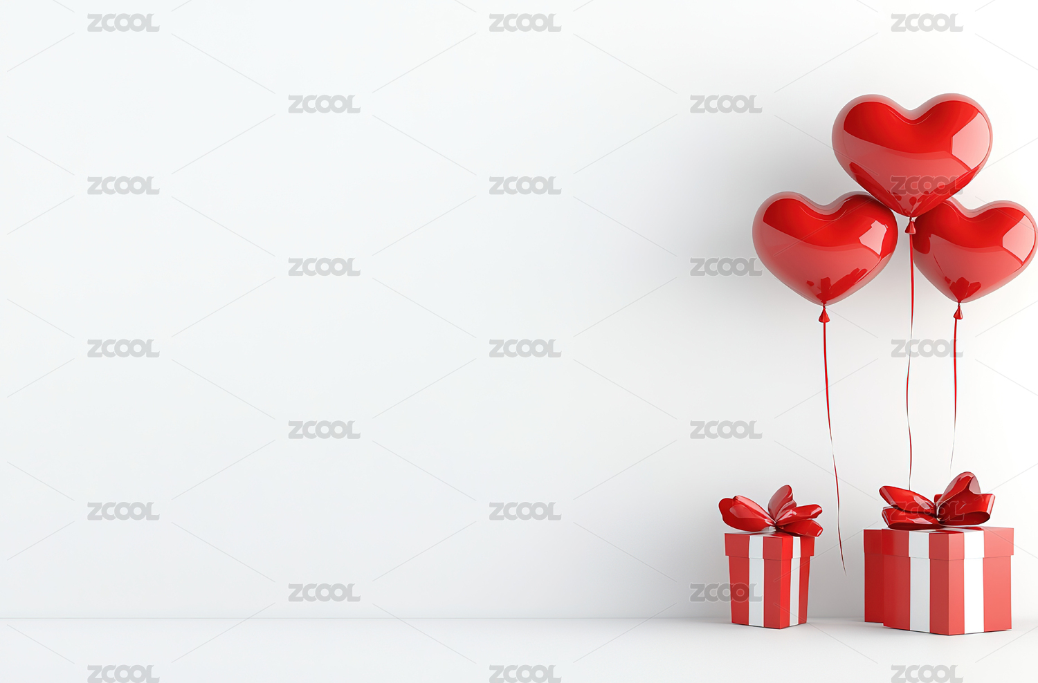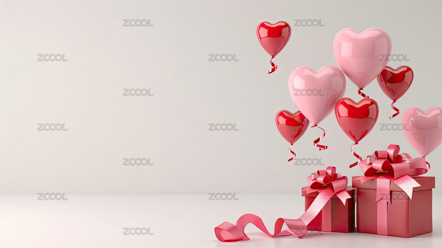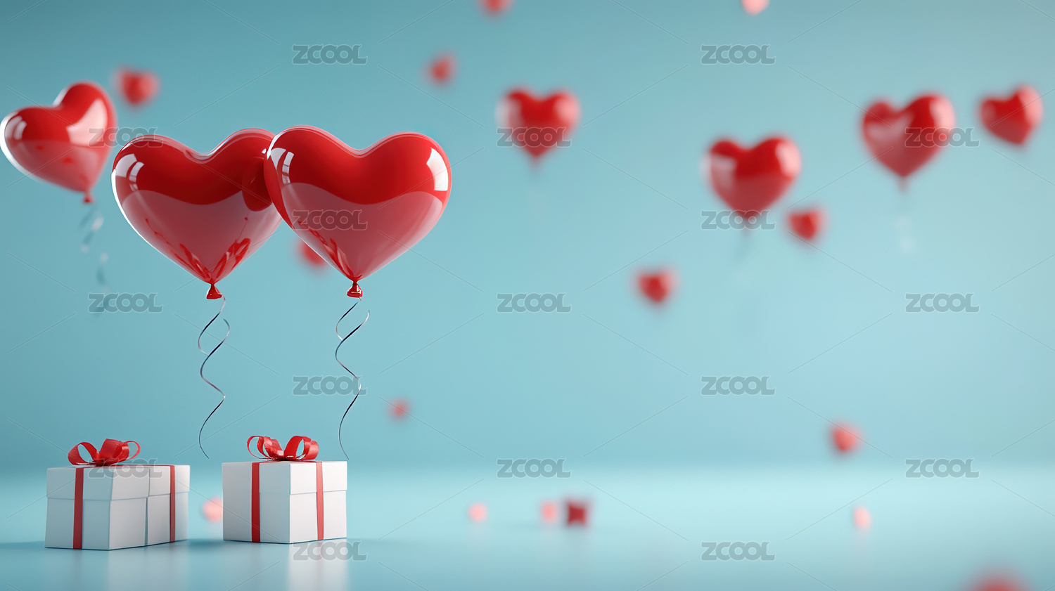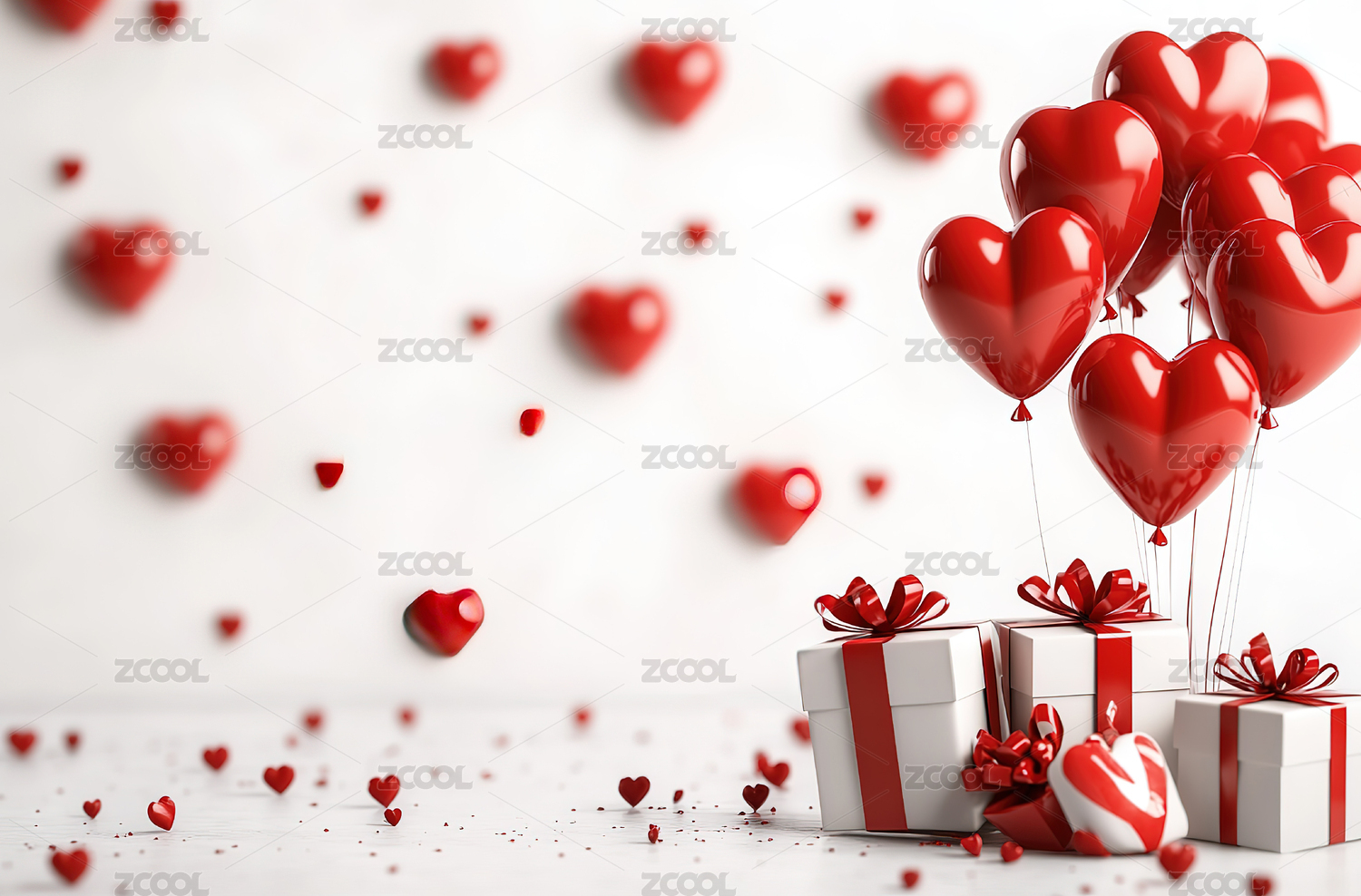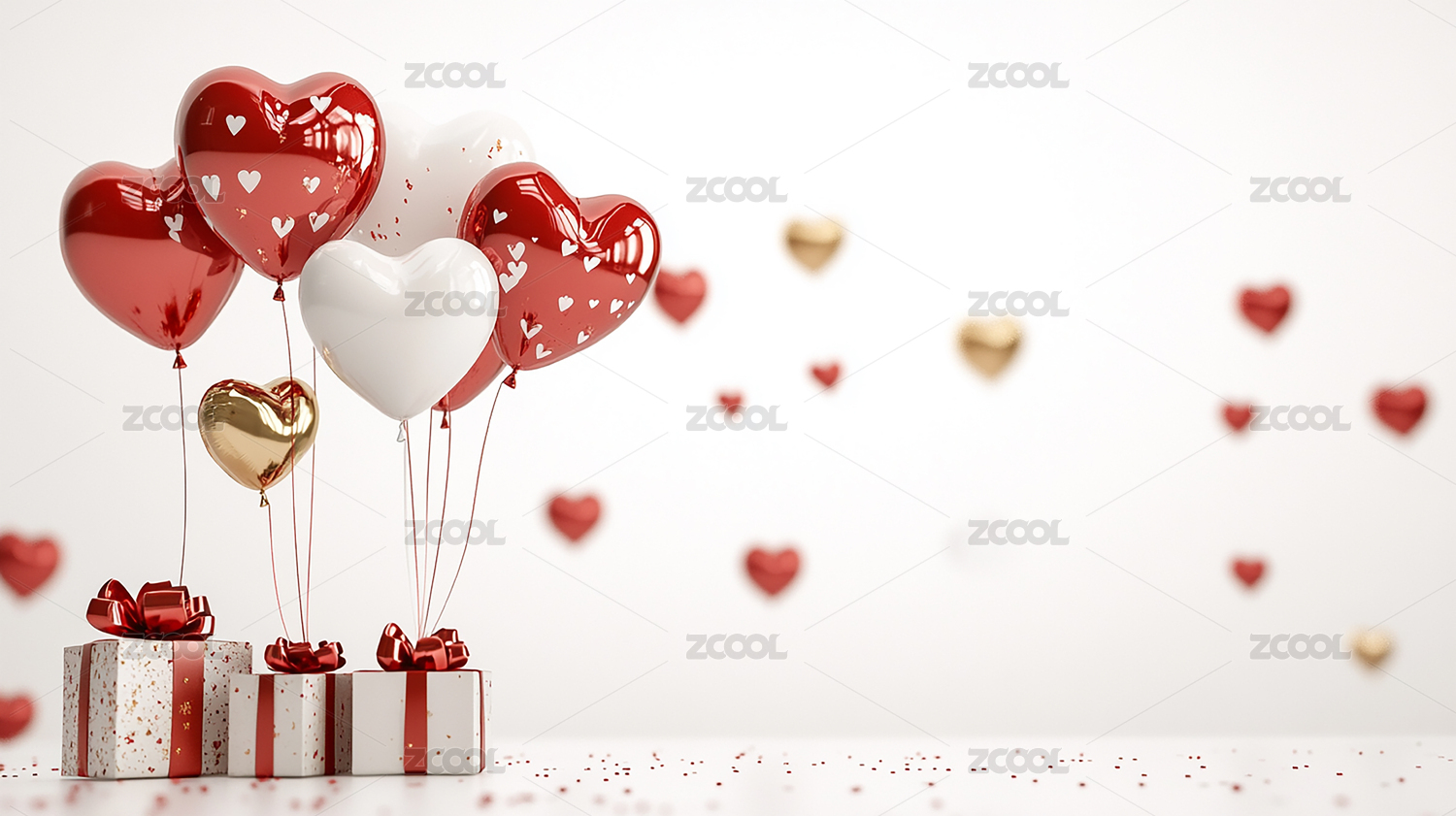 红白心形气球与礼盒的浪漫氛围
