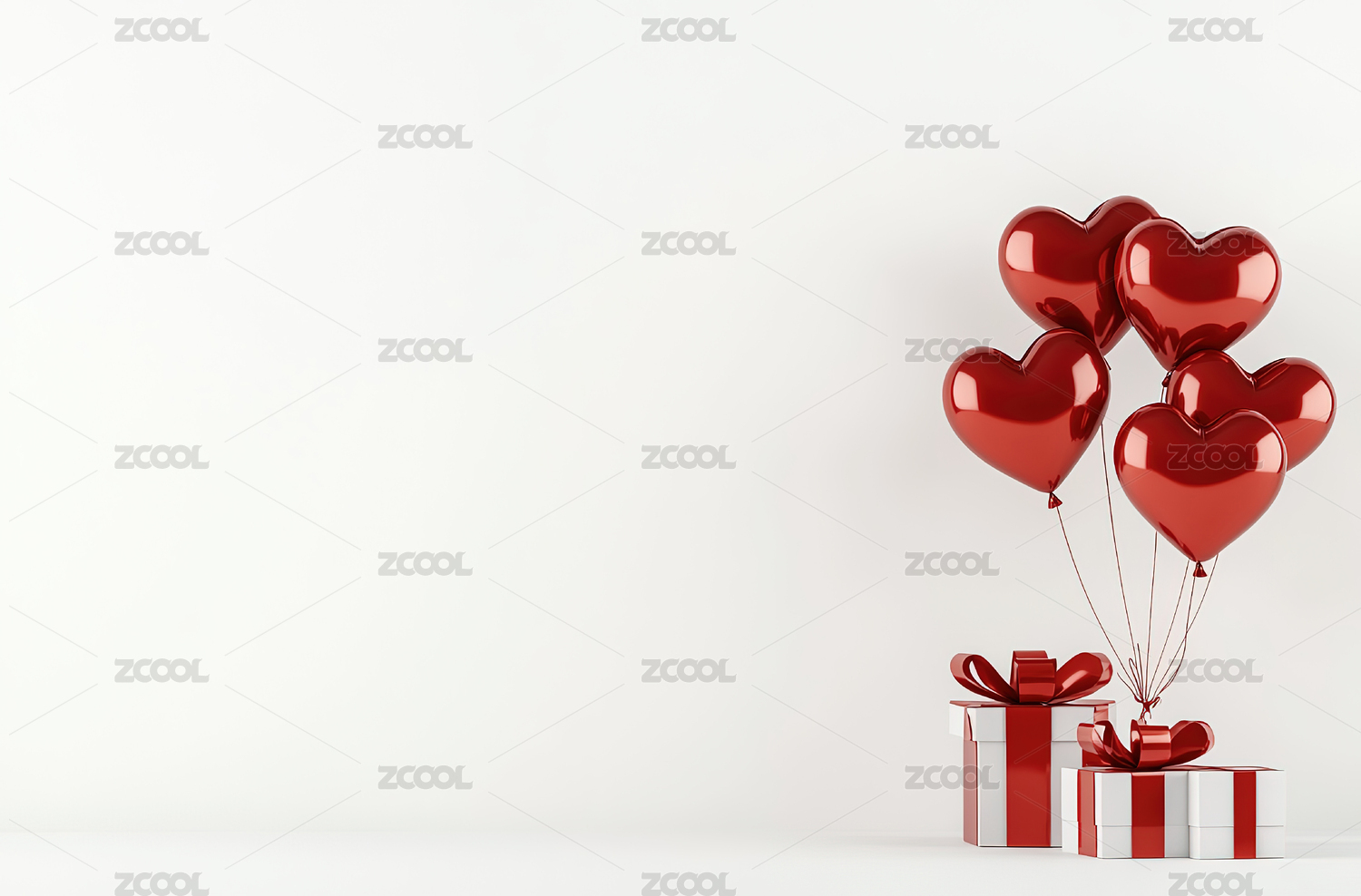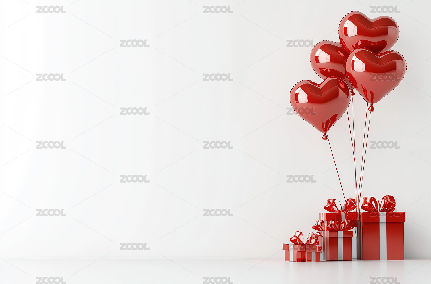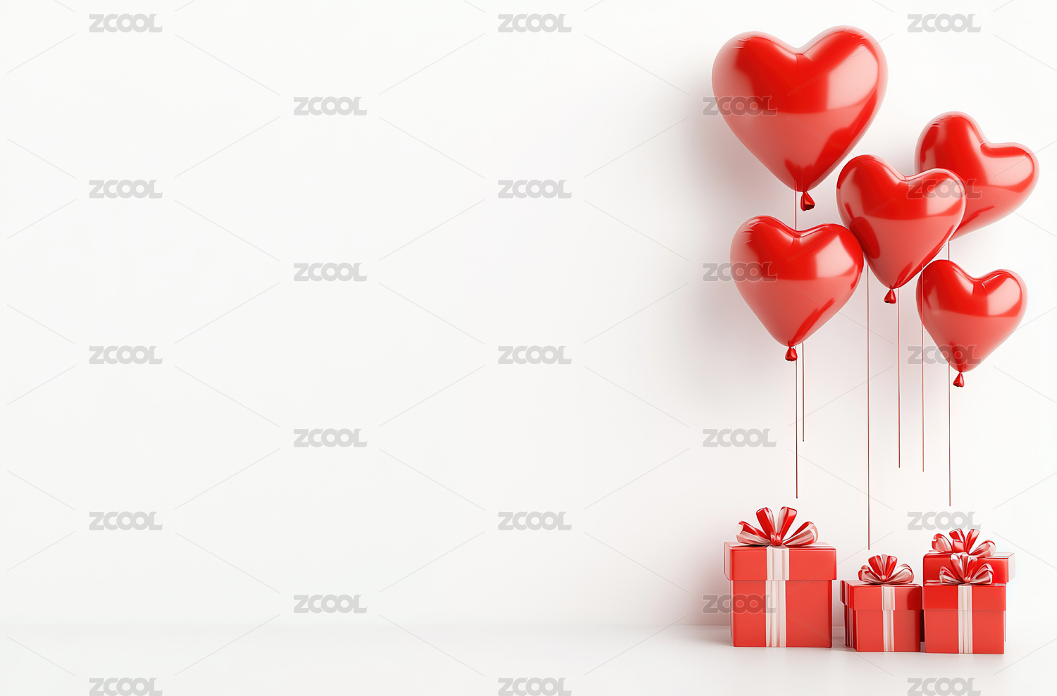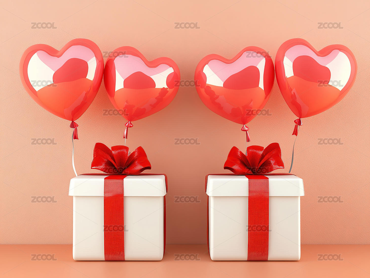 红白心形气球与礼盒的浪漫氛围