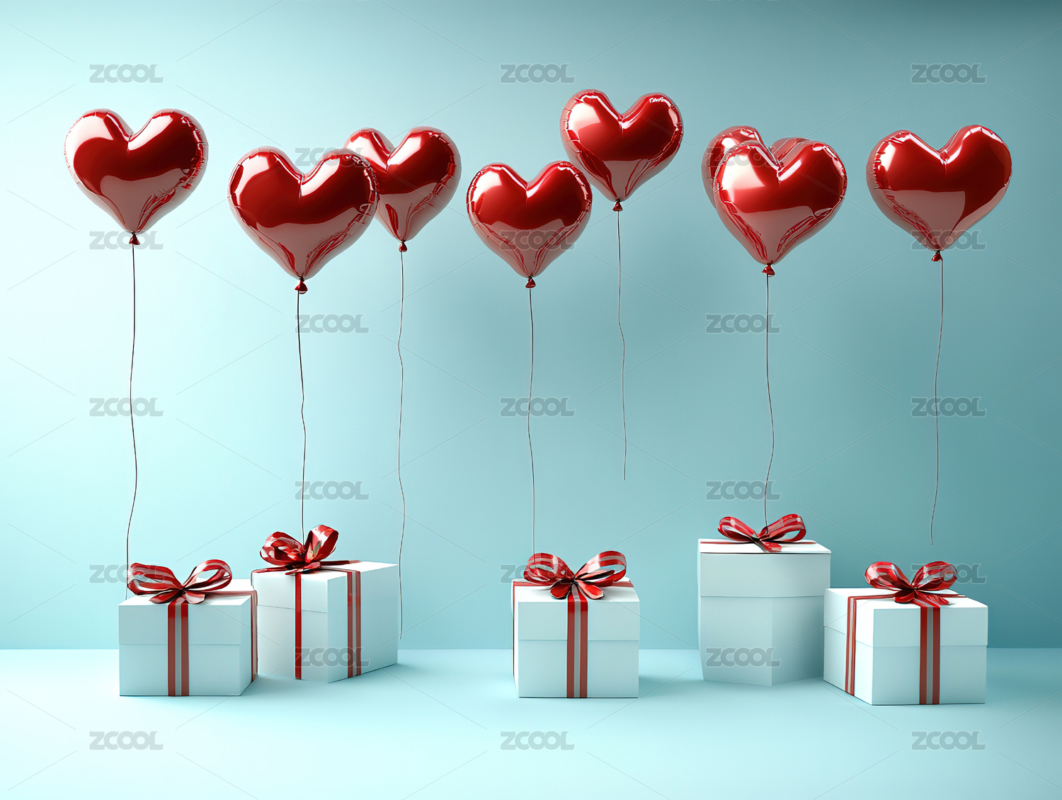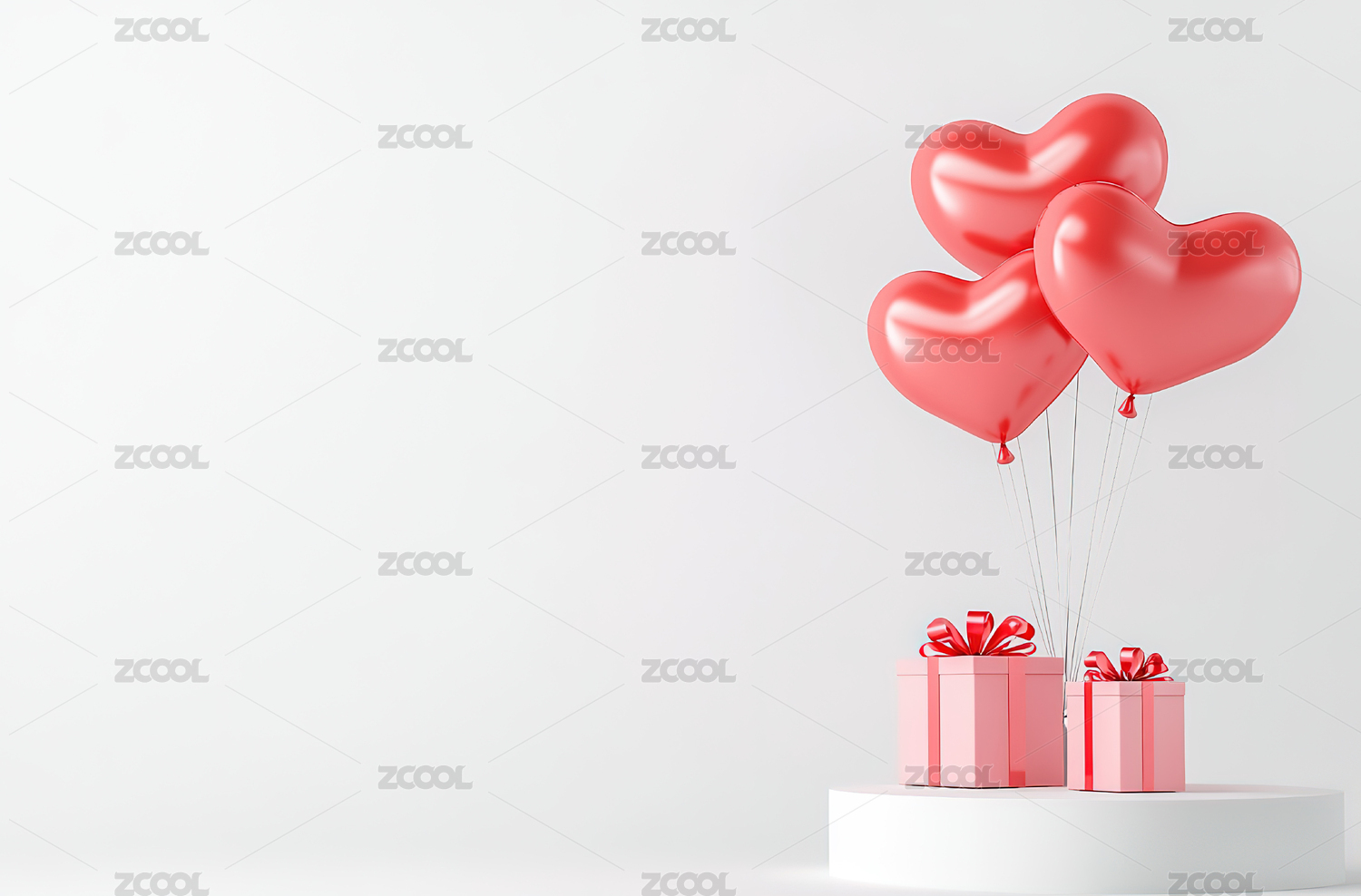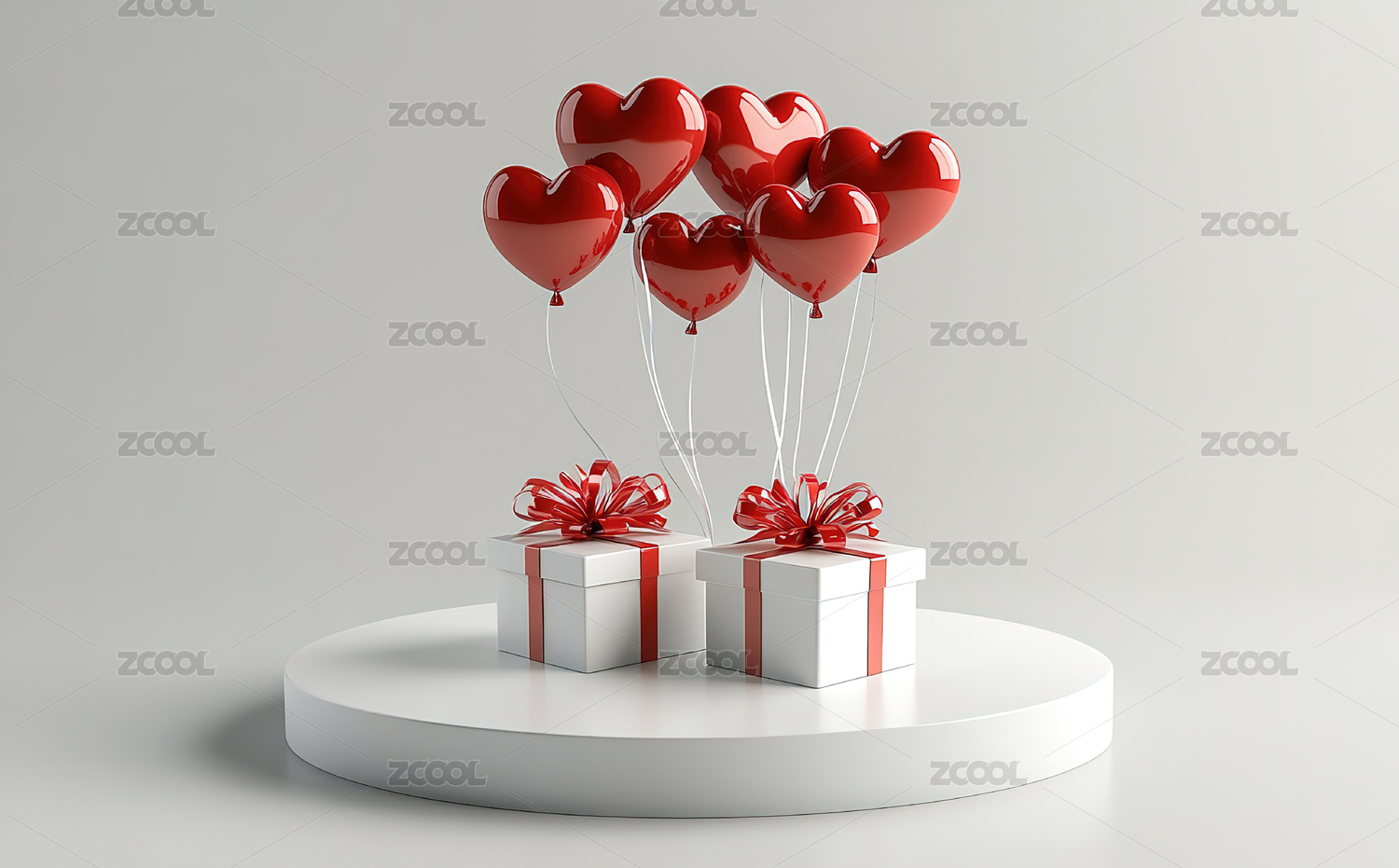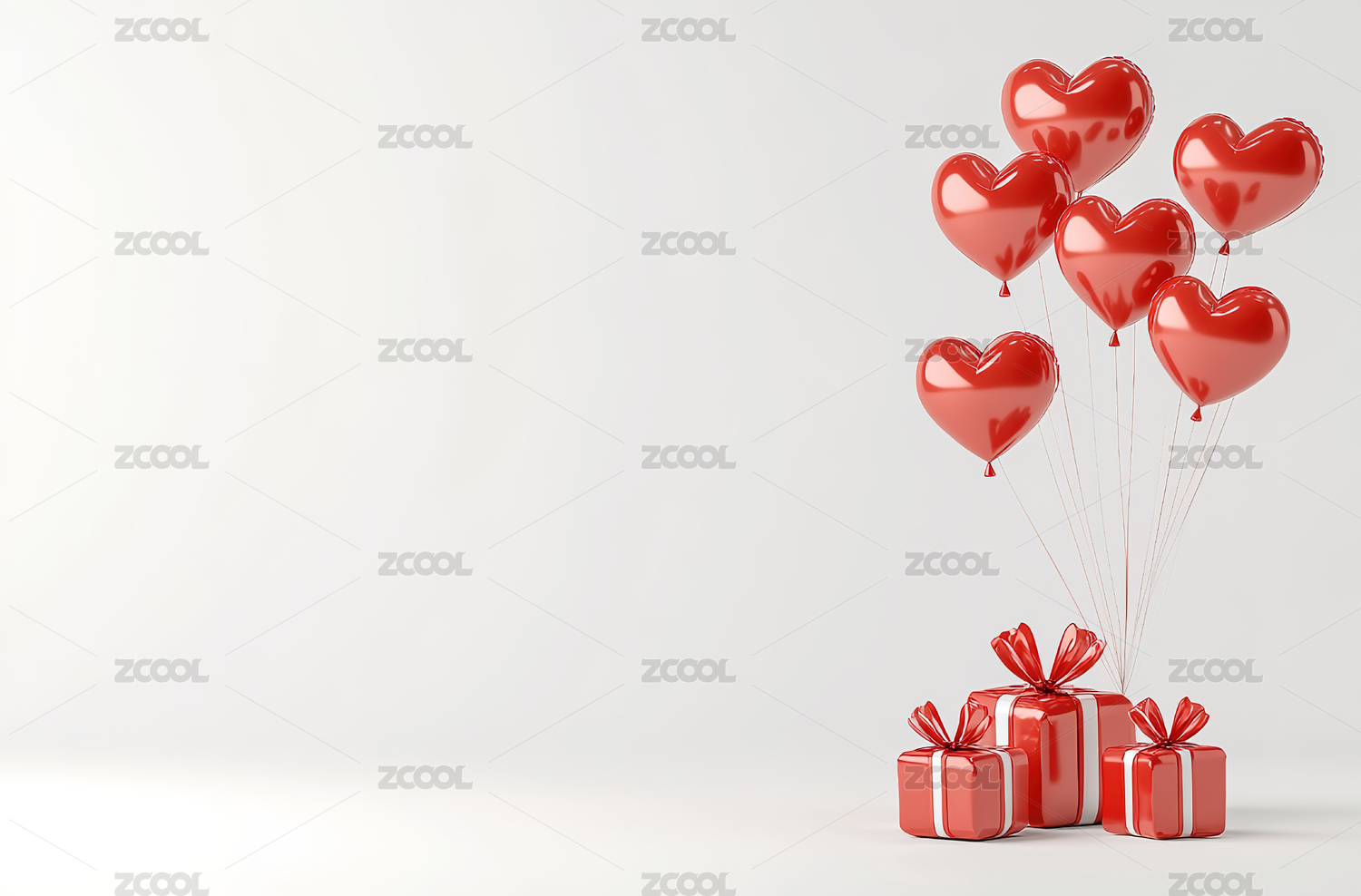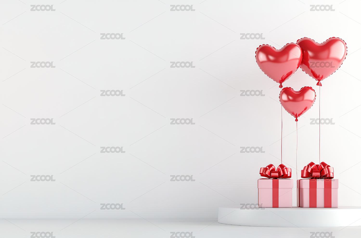 红白心形气球与礼盒的浪漫氛围