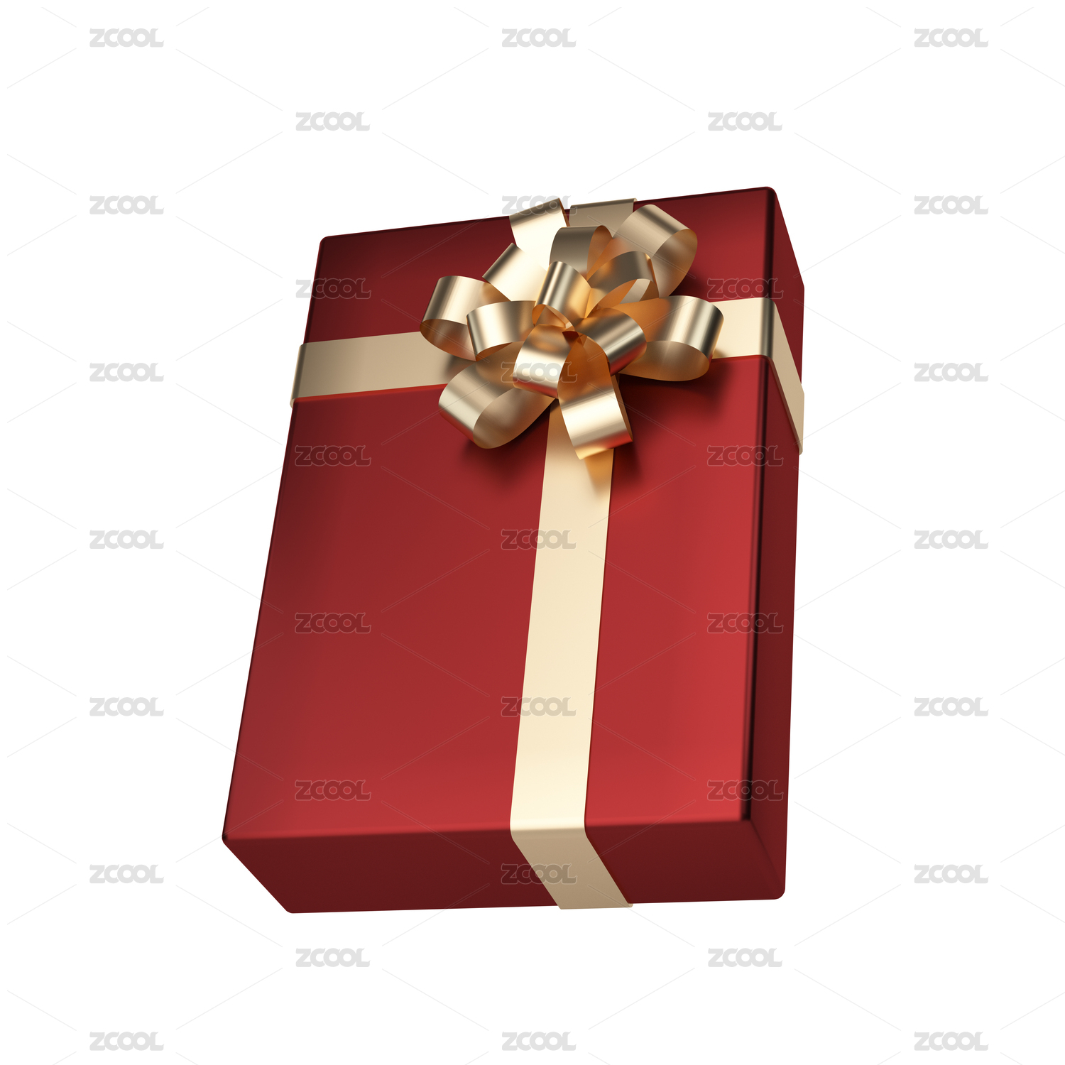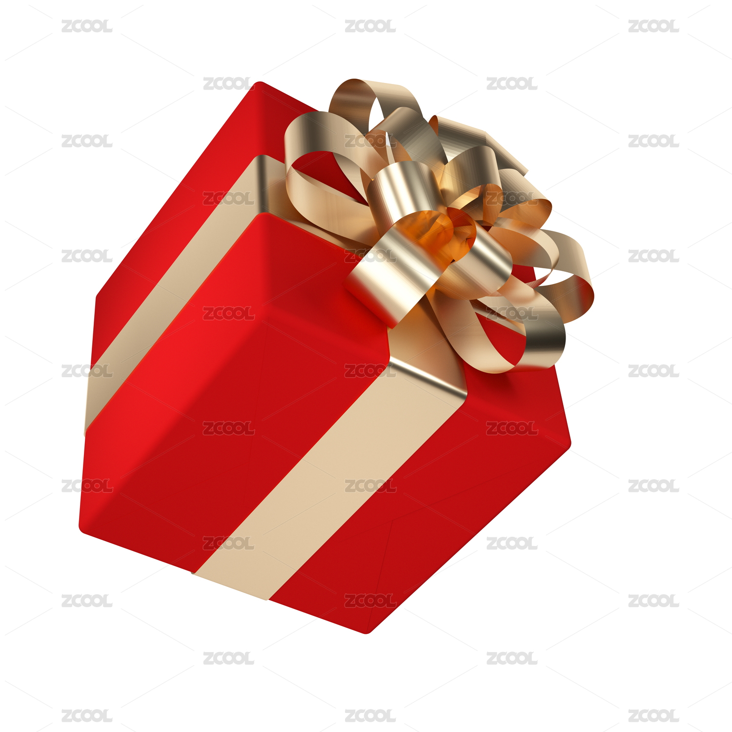 红金色礼物盒新年促销喜庆3d立体插画元素