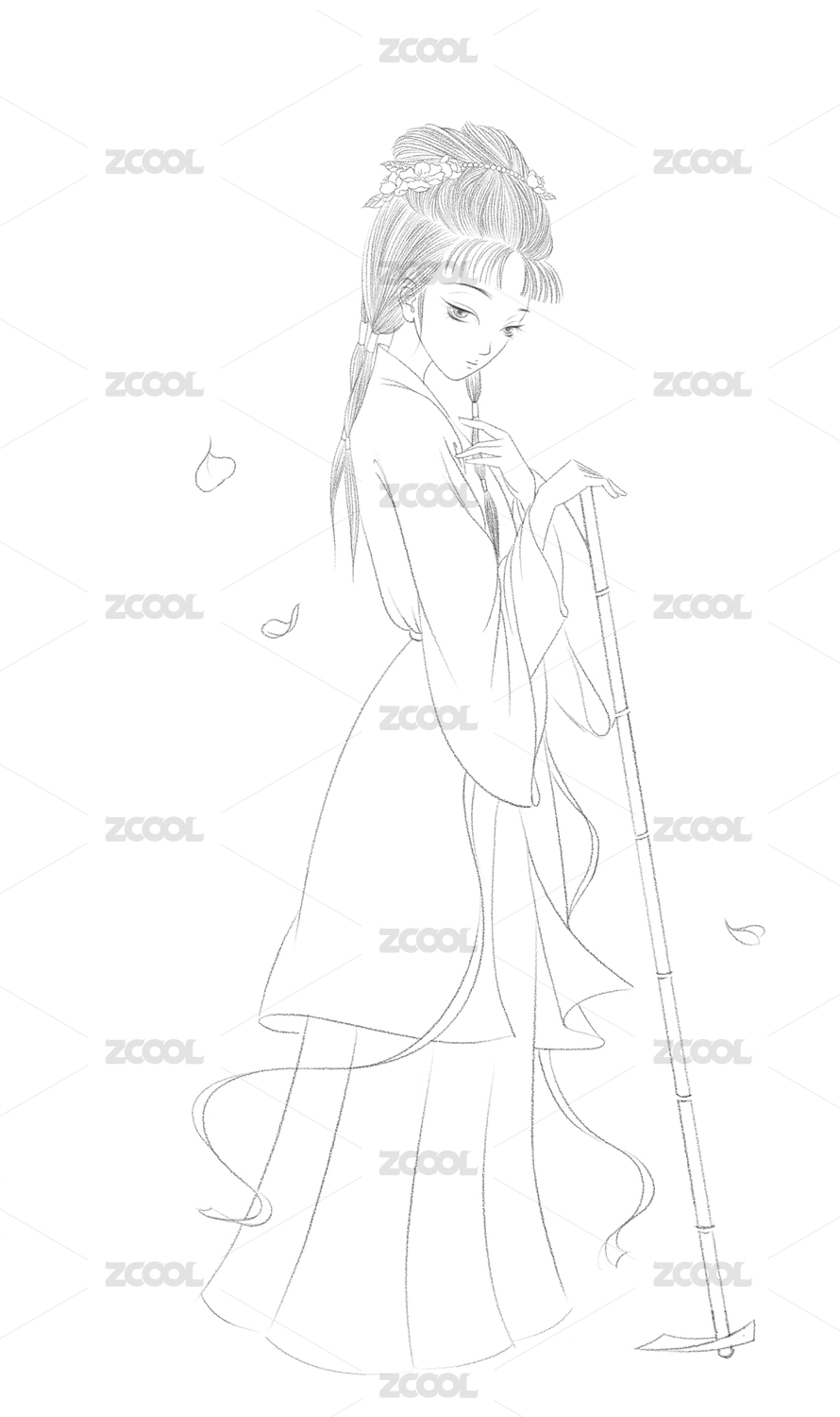 日本和服艺妓插画线稿