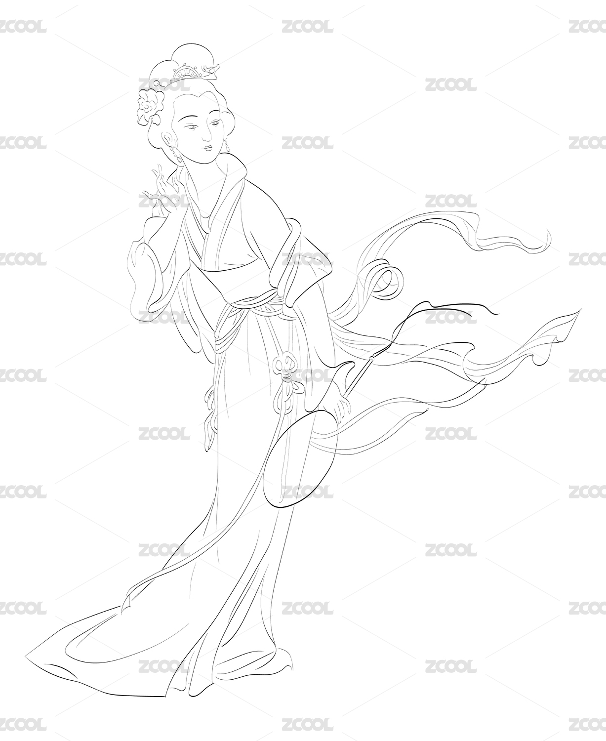 传统的东方女性 简约线条插画