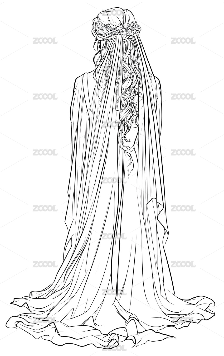 身披婚纱的漂亮新娘简笔画