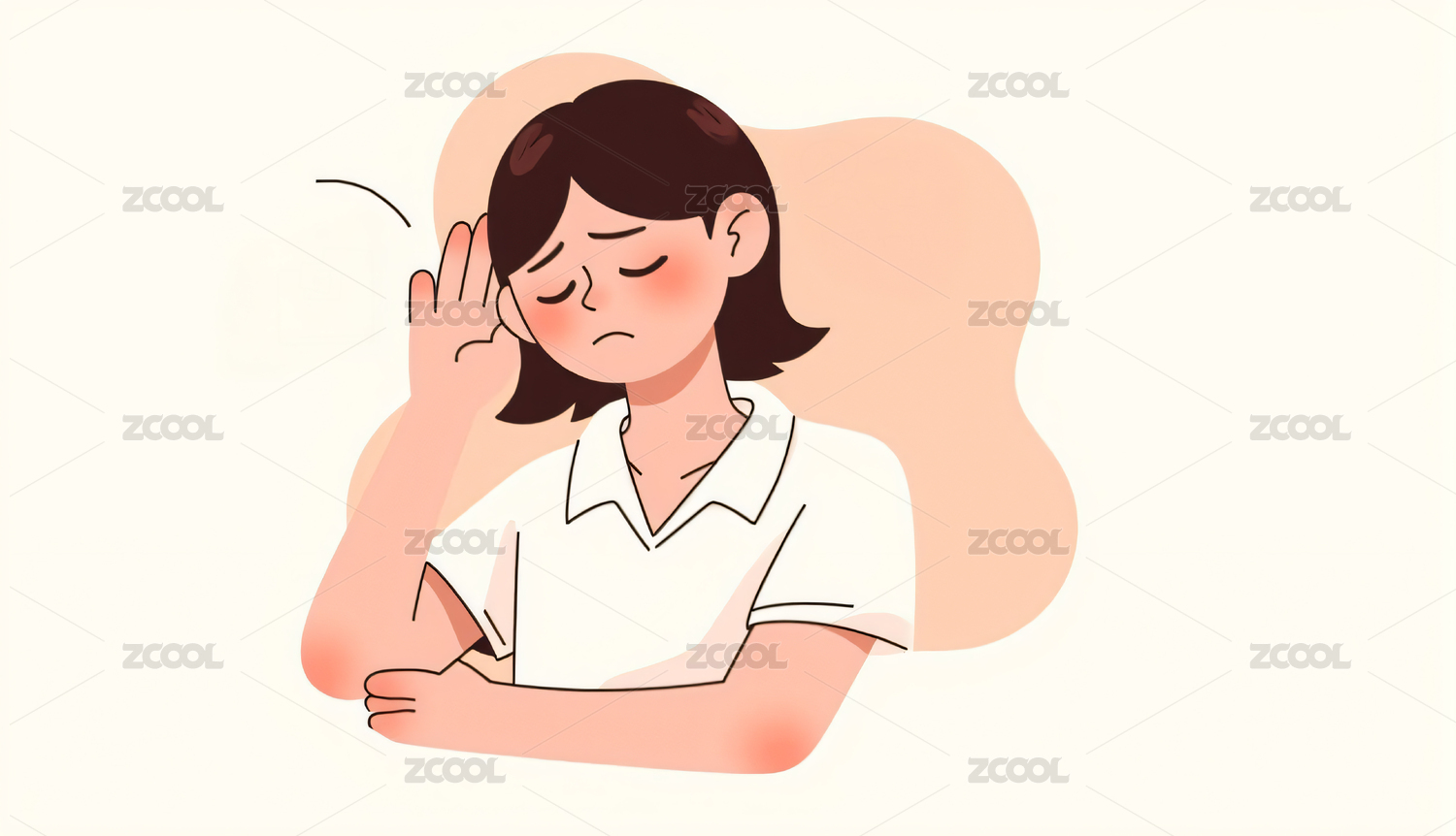 女孩想碰却不敢碰自己长痘的脸卡通漫画插画