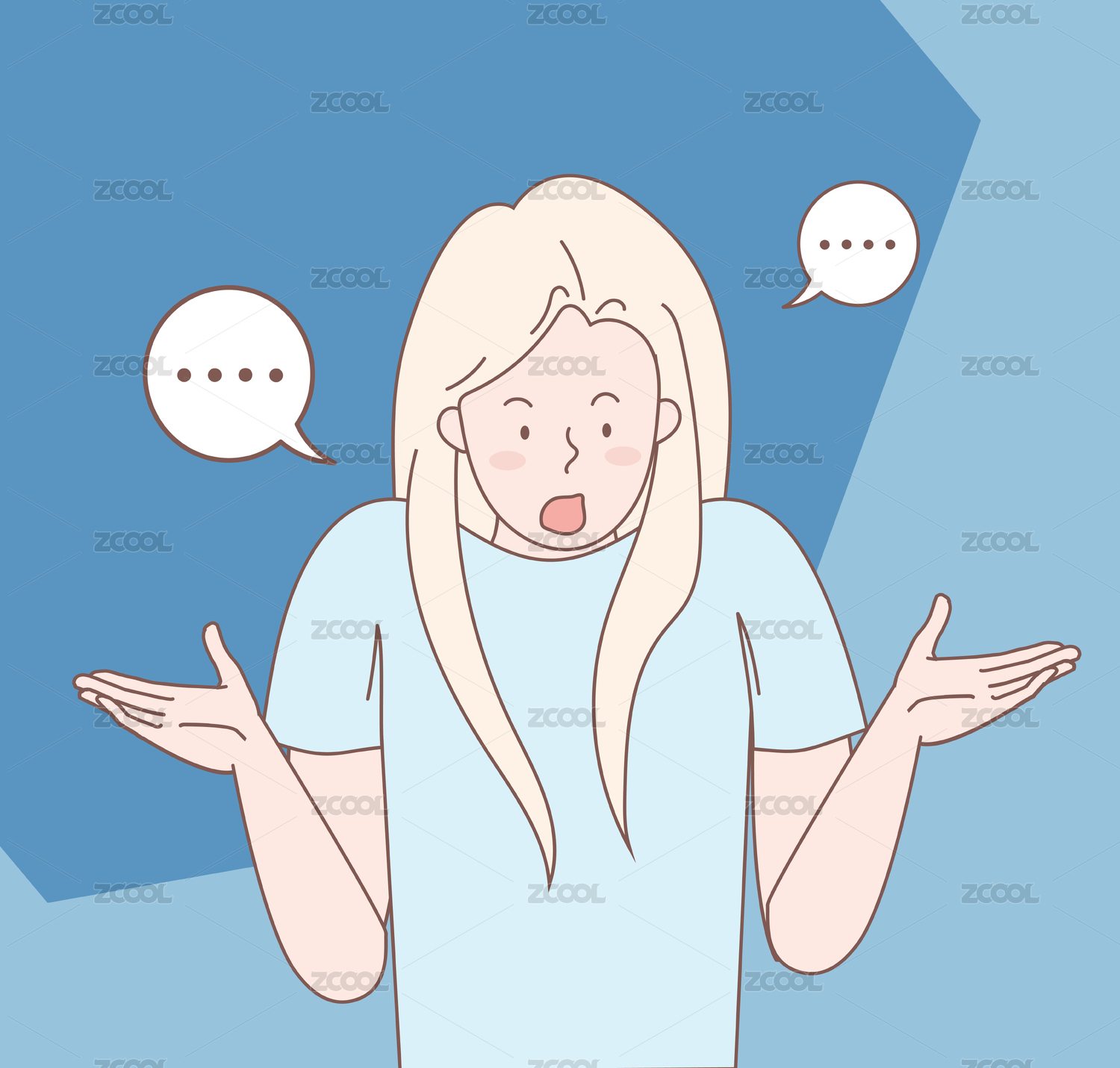 脸上长痘的女孩 表情痛苦困惑 卡通人物