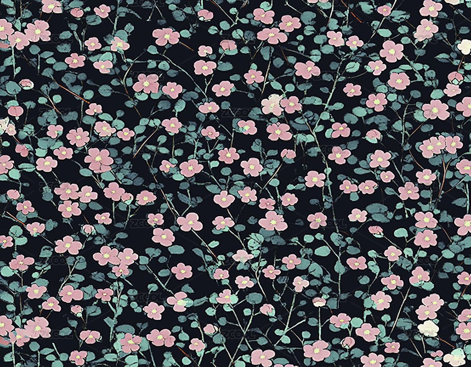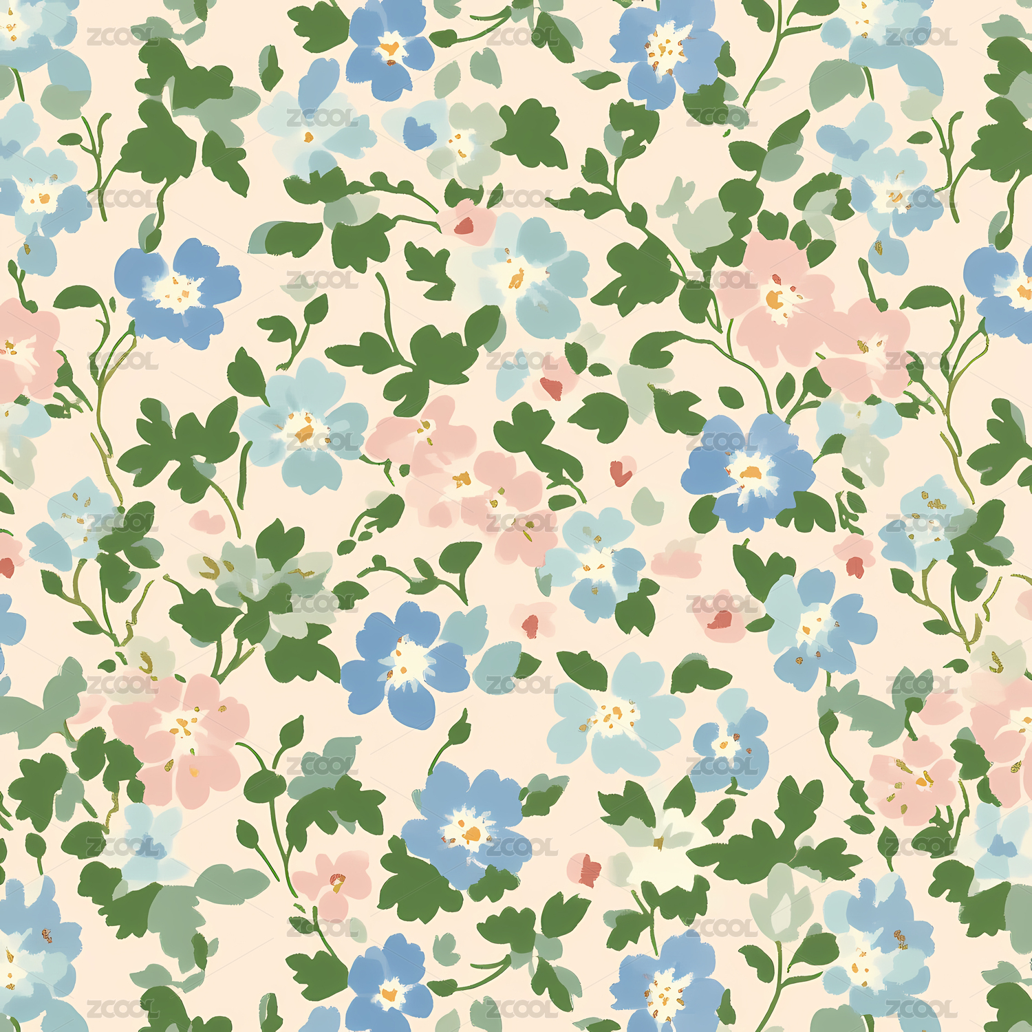 蓝色小清新缠枝藤蔓花卉四方连续无缝图案