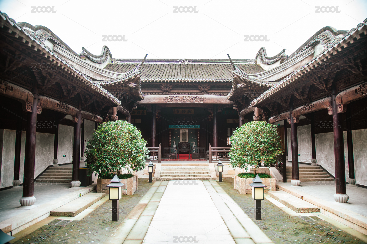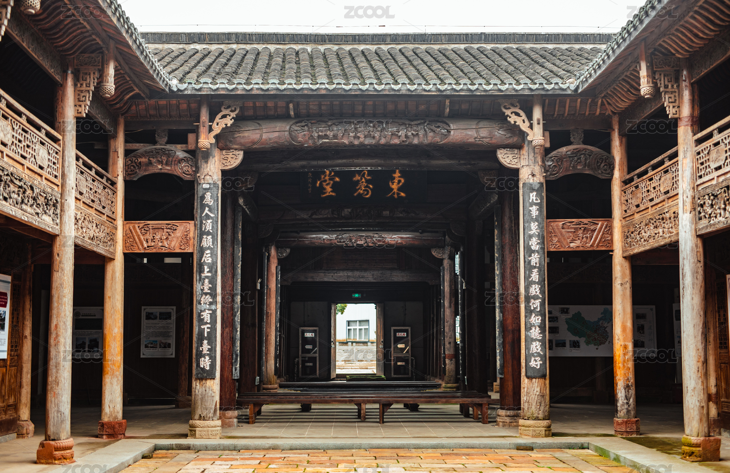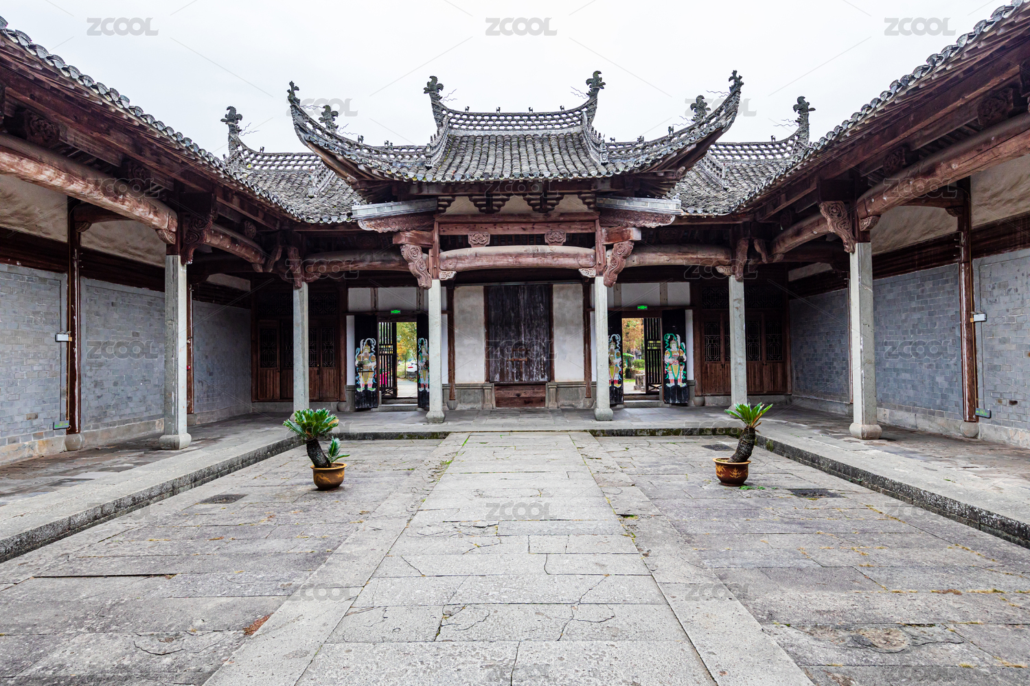 中国安徽黄山唐模古镇里的大宅庭院风光