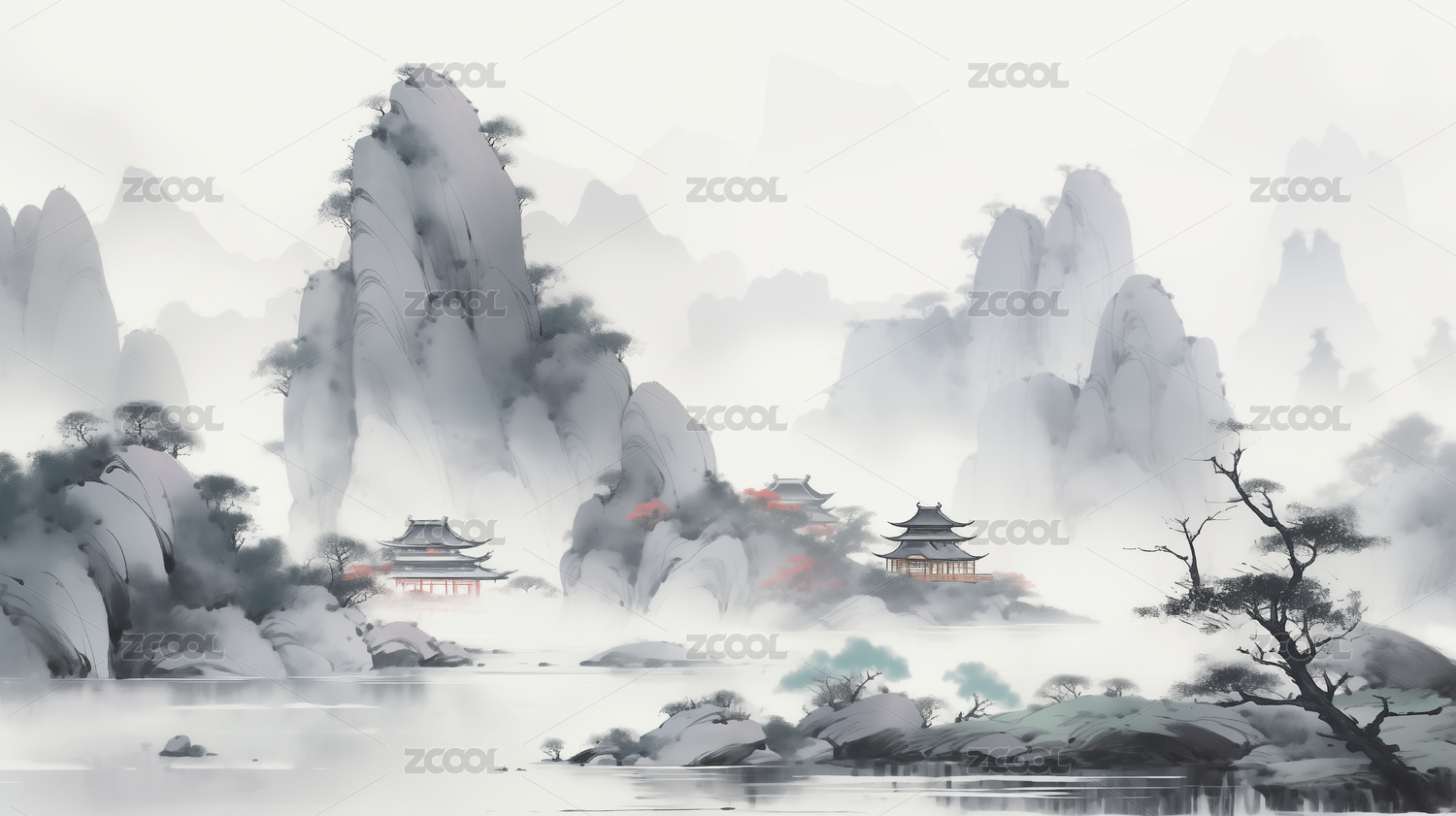 山水画,山水,水墨,国画,丹青,国风,水彩,工笔画,云,树