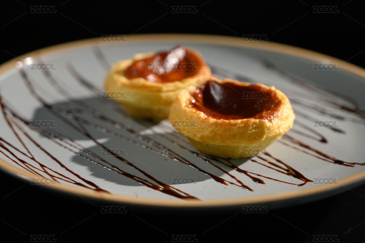 桌面上的盘子里的美味可口的咖啡蛋挞