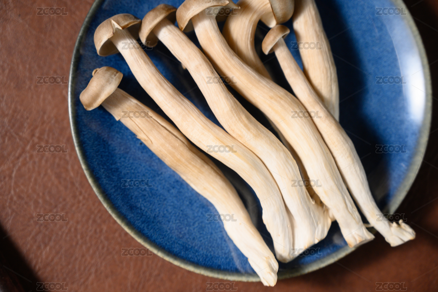 桌面上的盘子里的美味可口的新鲜鹿茸菇