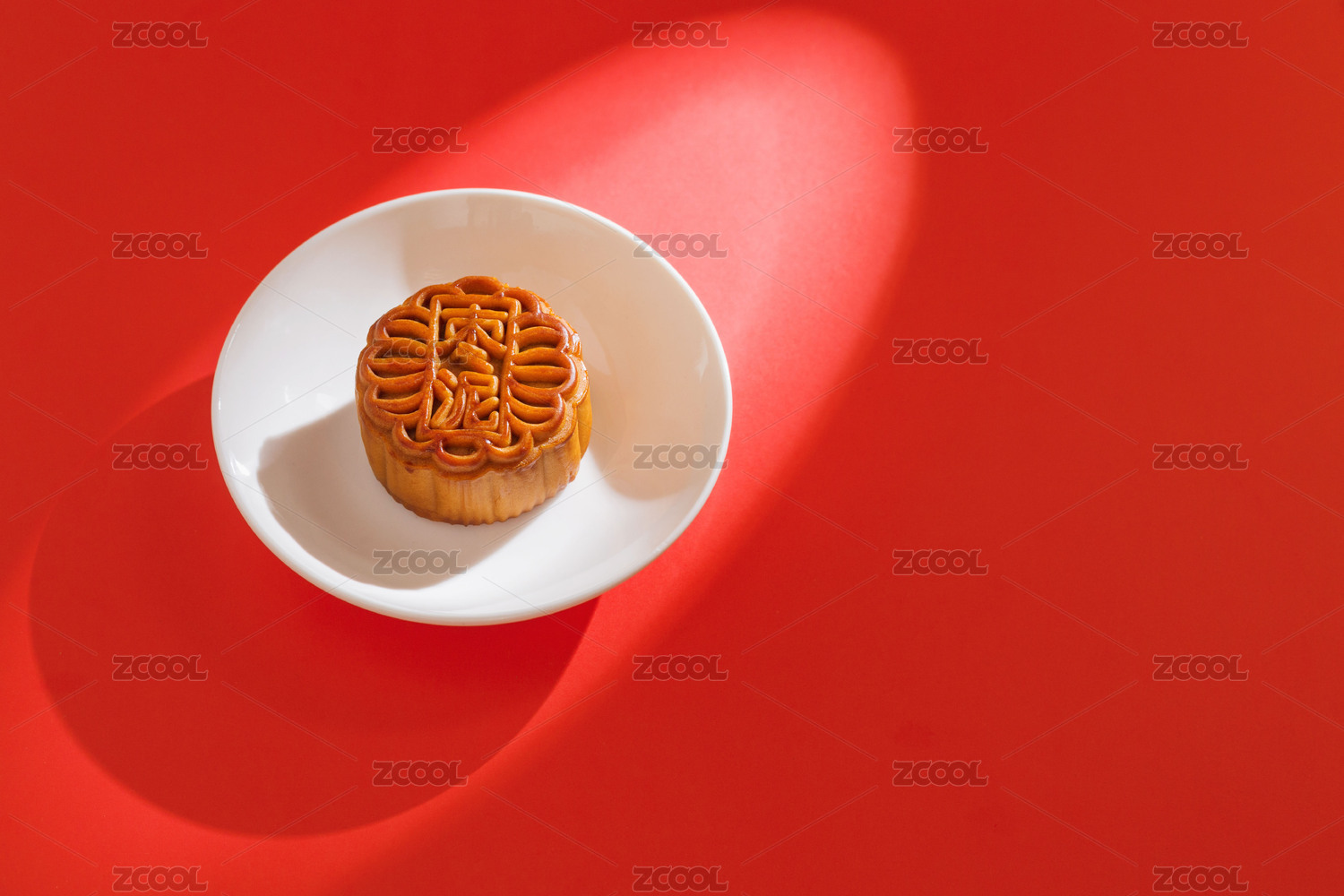 月饼在红色的背景上,中国传统节日,中秋的特色小吃。