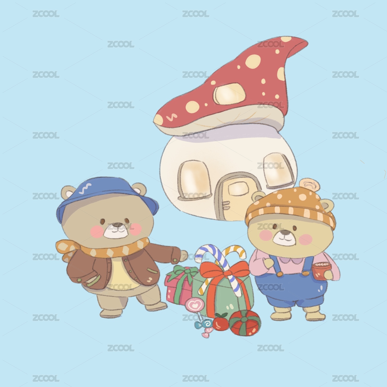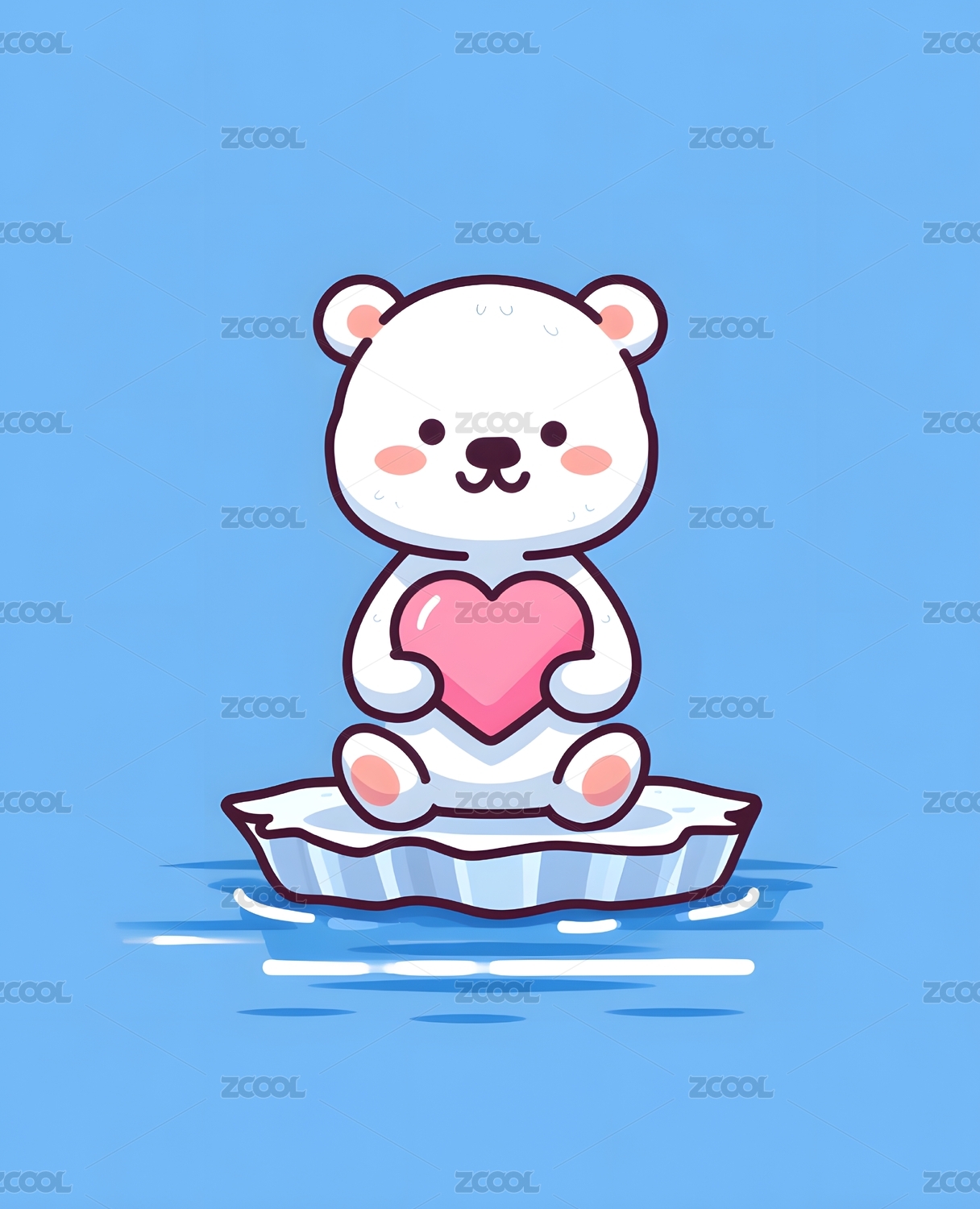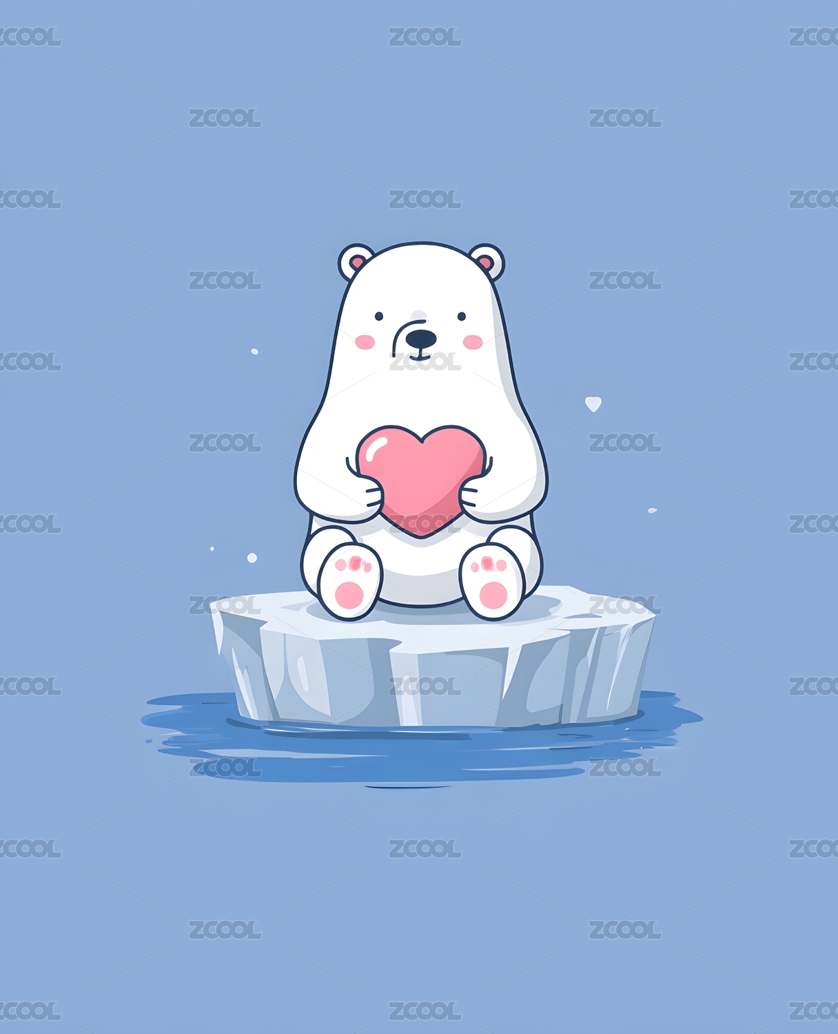 北极熊手捧爱心坐冰面 暖心蓝色插画