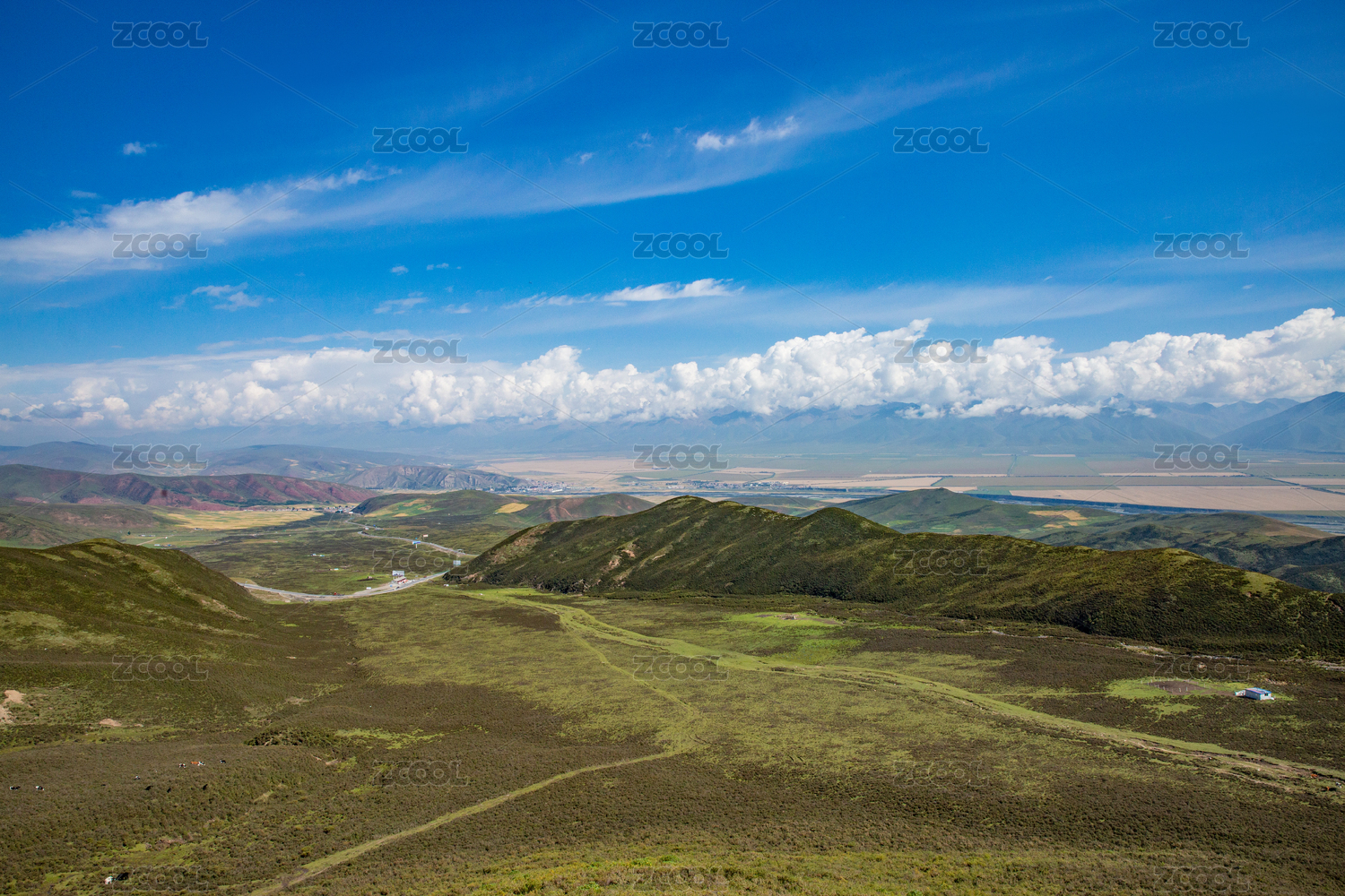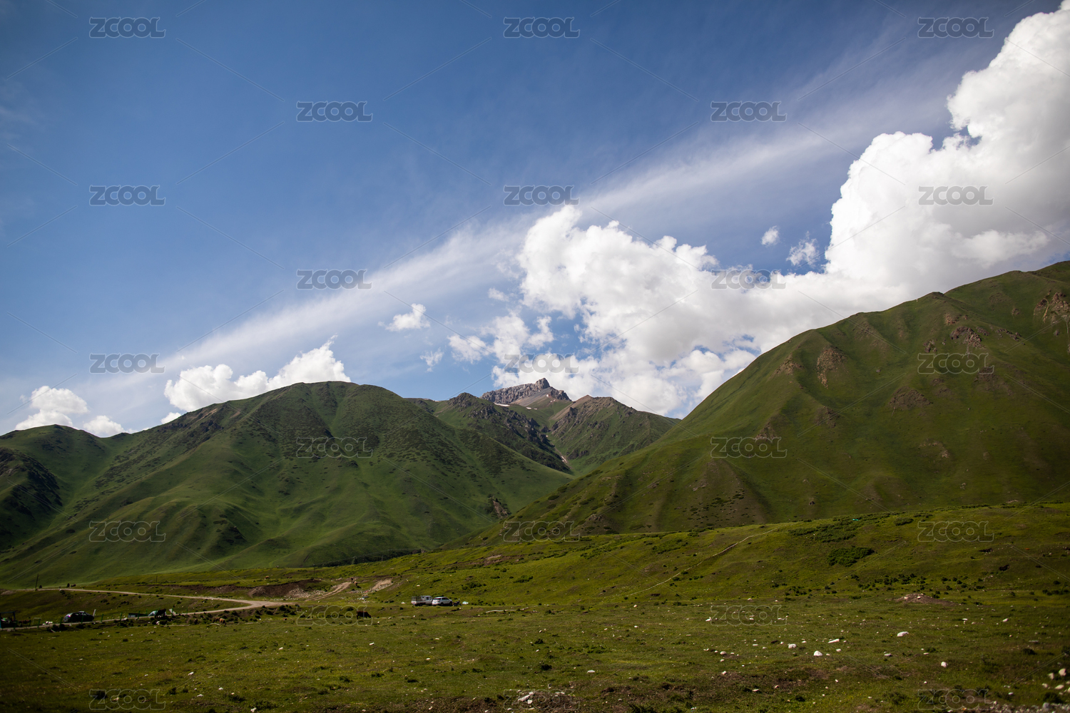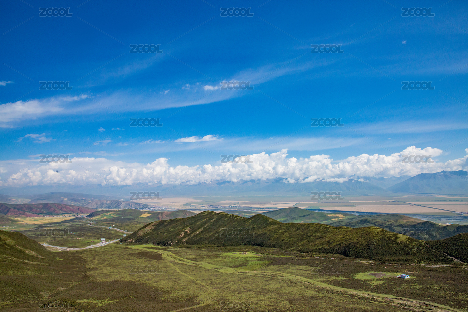 中国四川甘孜藏族自治州蓝天白云下的草原山