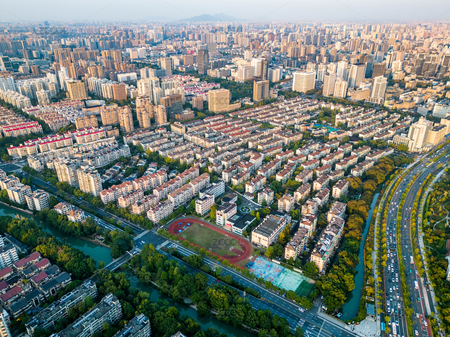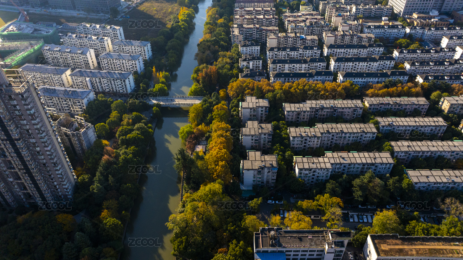 浙江省杭州拱墅区朝晖上塘河秋色航拍