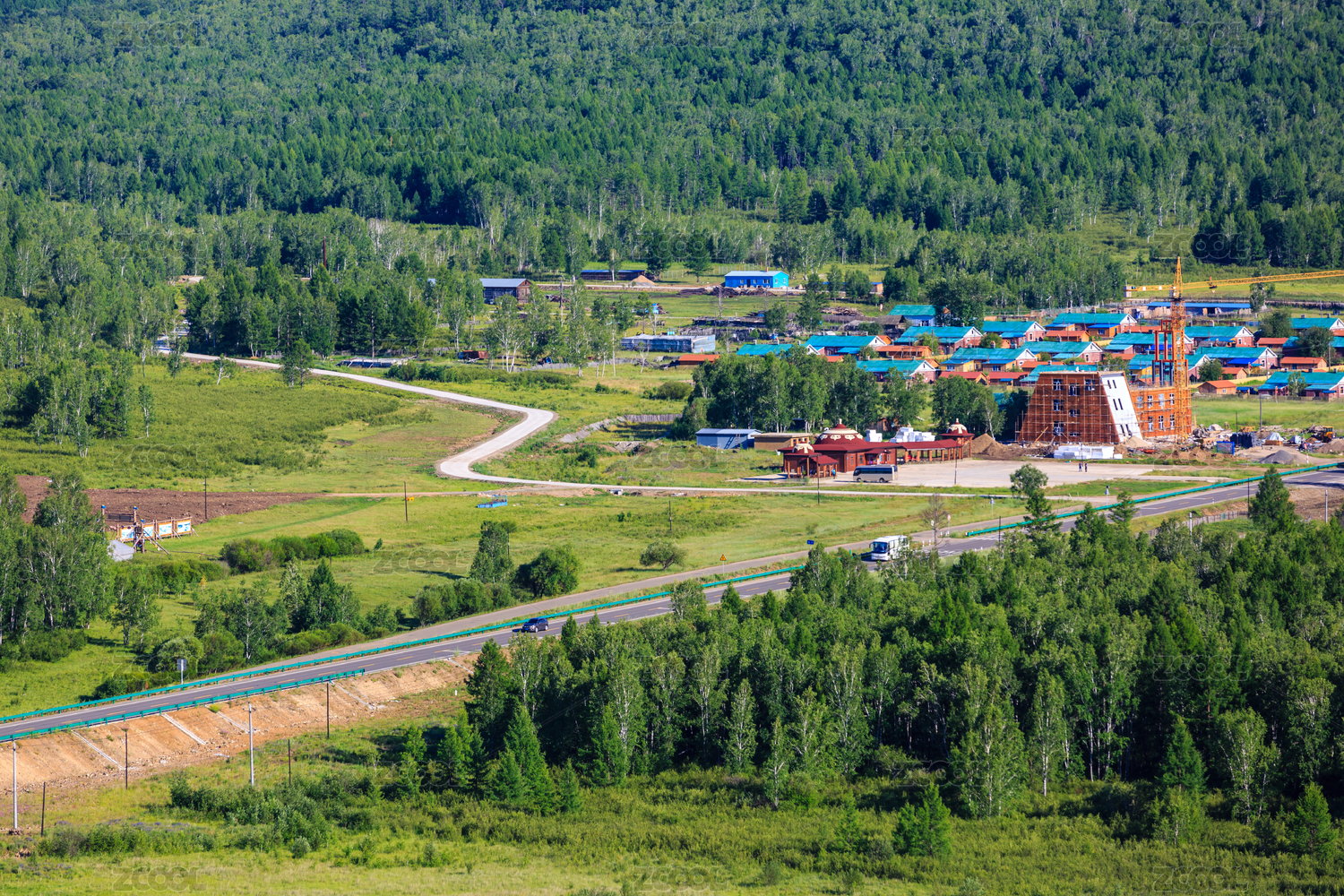 中国新疆阿勒泰地区禾木景区夏季航拍风光