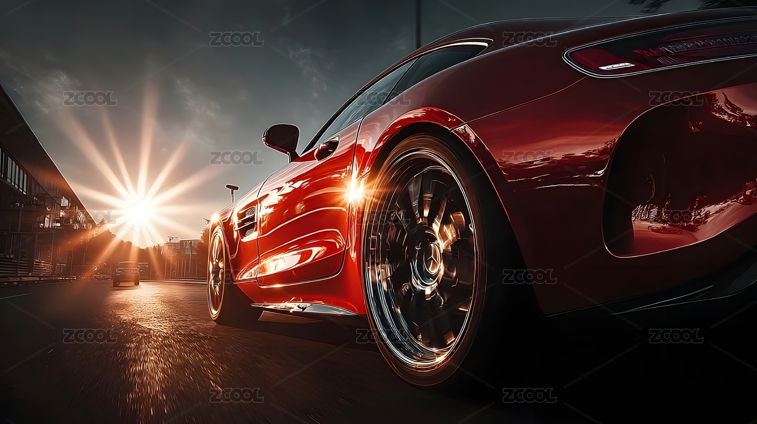 红色跑车夕阳疾驰
